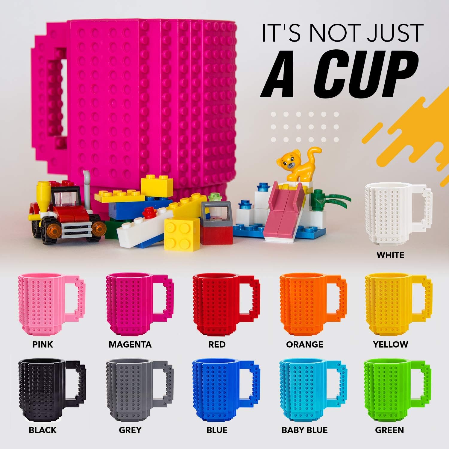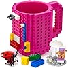 Taza de Loza Construible BPA Libre Divertida con 3 Bloques de Construcción, Taza Divertida para Niños - Idea Creativa de Bloques de Construcción DIY 16OZ (Magenta)