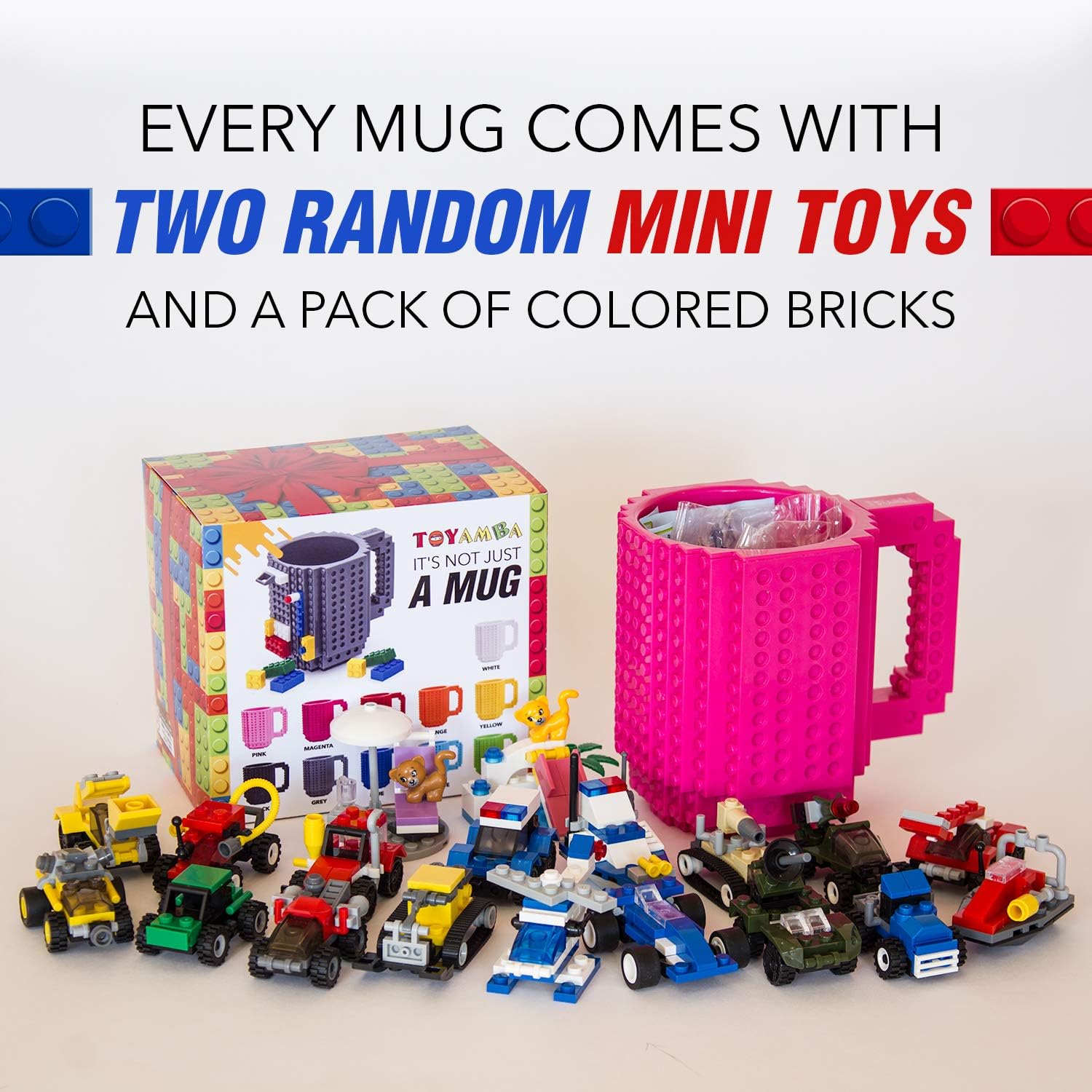 ✅ Bloques de Construcción de Colores Aleatorios Incluidos: Solo para hacerla más divertida, la taza de café con bloques de construcción viene con juguetes mini que se pueden construir sobre la taza.
