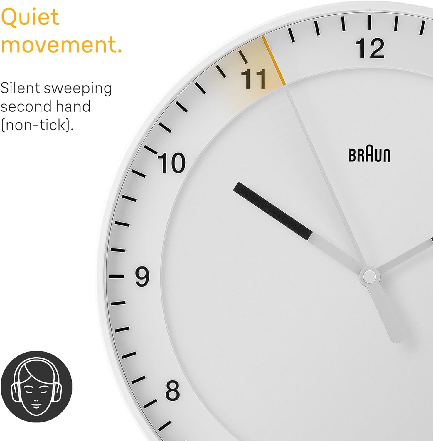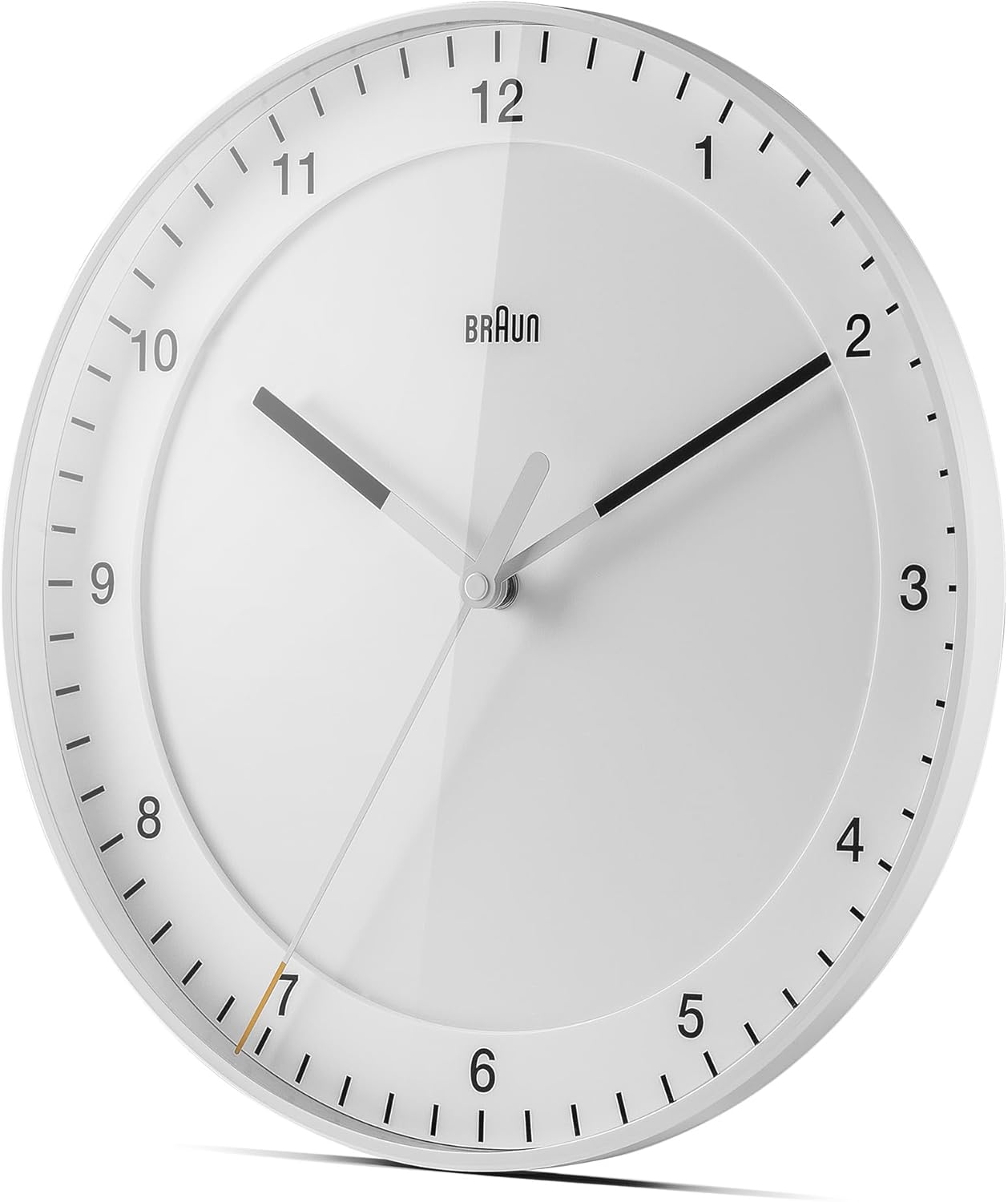 Reloj de Pared Analógico Clásico Grande Braun con Movimiento de Recorrido Silencioso, Fácil de Leer, Diámetro de 30cm en Blanco, Modelo BC17W.