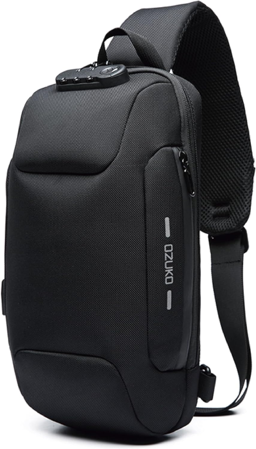 Mochila Sling USB Antirrobo OZUKO para Hombre, Bolsa de Pecho Casual para Hombro, diseñada para la comodidad y seguridad en el día a día. Perfecta para llevar tus pertenencias con estilo y protección.