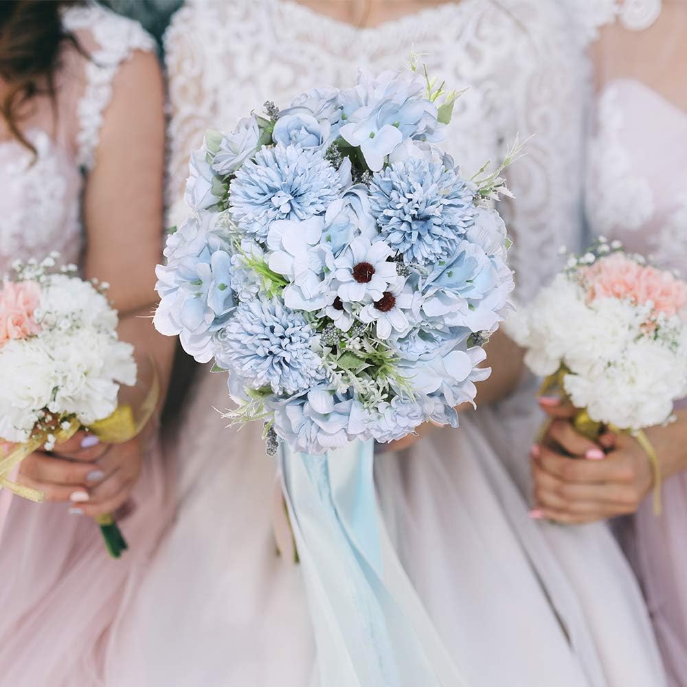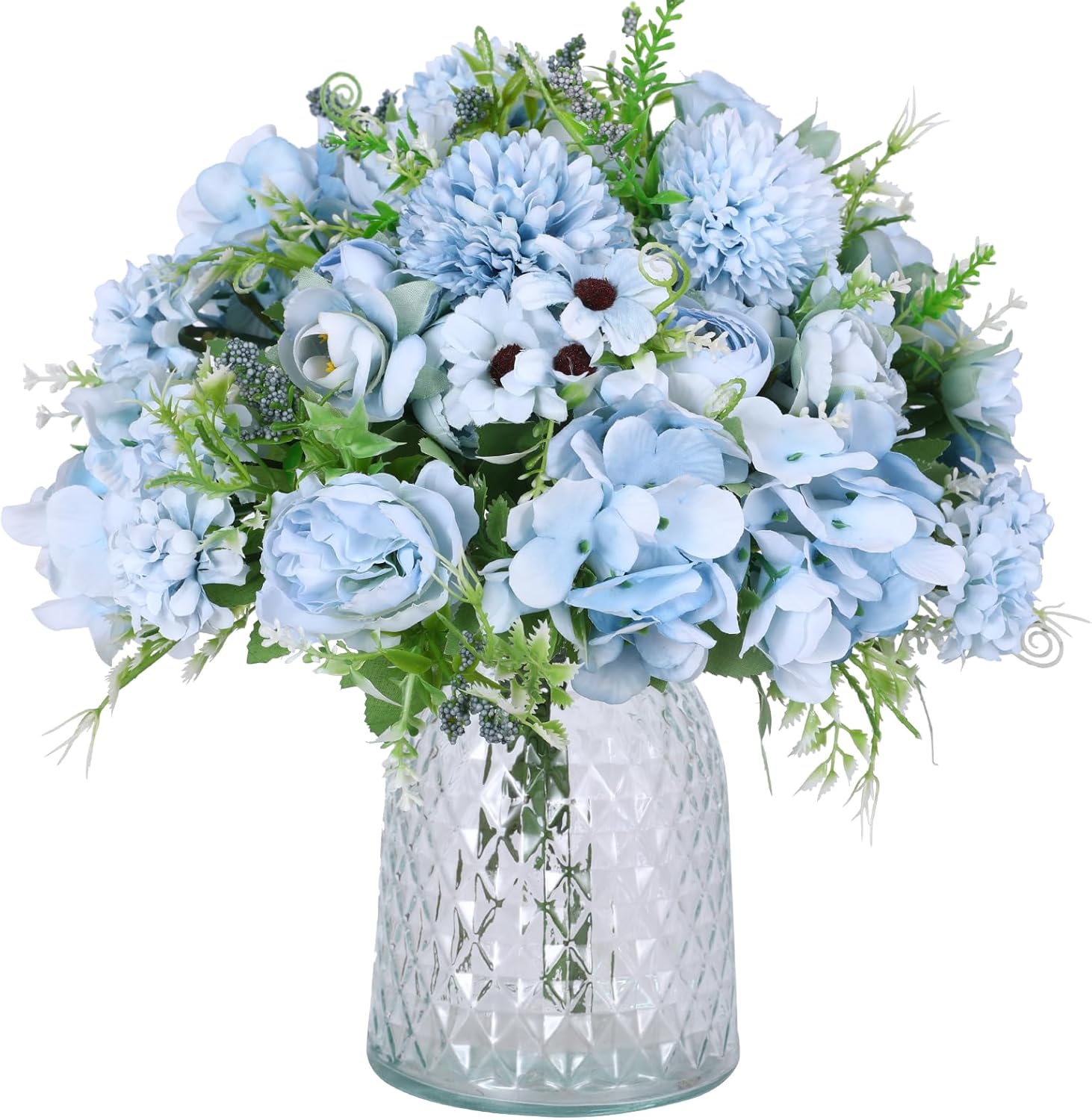 Nubry 3 piezas de ramo de flores artificiales Peonía de seda Hydrangea Flores silvestres con tallos para decoración de bodas y centros de mesa para el hogar (Azul claro)
