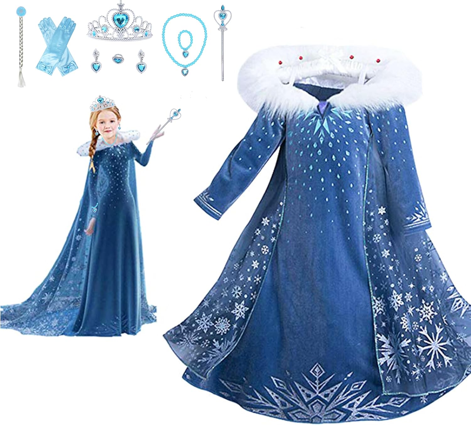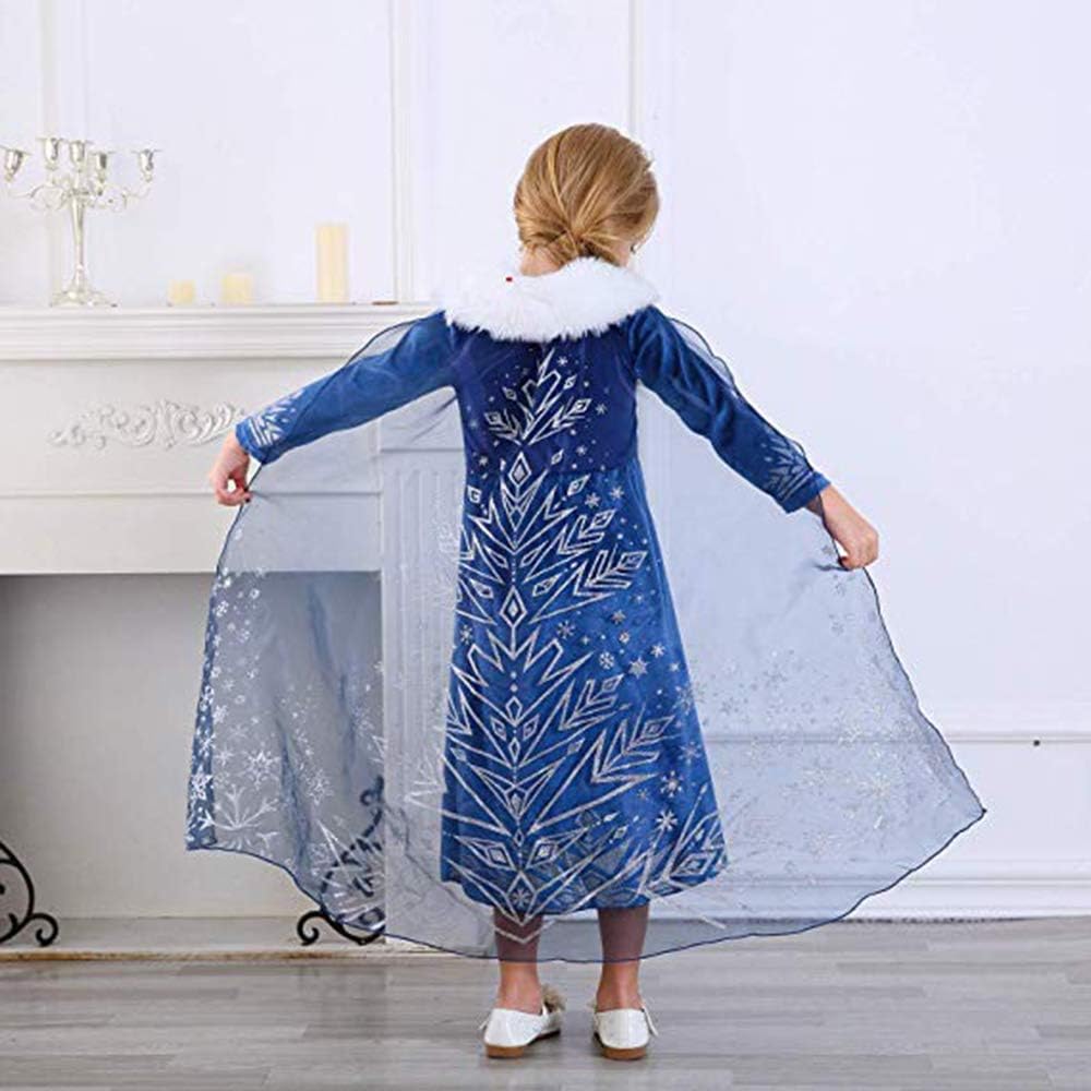 Disfraz de Cosplay de Princesa para Niñas Vestido de Fiesta Invierno Disfraces Deluxe para Halloween para Niñas de 3-8 años Características: 1. Este disfraz de princesa cosplay para niñas está hecho de terciopelo súper cómodo, y no tiene material áspero. 2. Este elegante vestido de princesa de fantasía presenta copos de nieve brillantes en el vestido, realmente llamativo. 3. Es un disfraz perfecto para fiestas de disfraces, bailes, vestirse o otras ocasiones especiales. Hace que cualquier niña se sienta mágica. 4. Este disfraz de reina cosplay se ajusta bien con alta calidad, hace que tu hija se convierta en un papel de princesa. Tabla de tallas: Talla: 110; Edad: 3-4 años; Busto: 56cm/22 pulgadas; Longitud: 75cm/29.5 pulgadas Talla: 120; Edad: 4-5 años; Busto: 58cm/22.8 pulgadas; Longitud: 80cm/31.5 pulgadas Talla: 130; Edad: 5-6 años; Busto: 60cm/23.6 pulgadas; Longitud: 85cm/33.5 pulgadas Talla: 140; Edad: 6-7 años; Busto: 62cm/24.4 pulgadas; Longitud: 90cm/35.4 pulgadas Talla: 150; Edad: 7-8 años; Busto: 64cm/25.2 pulgadas; Longitud: 95cm/3574 pulgadas Paquete incluido: Vestido de princesa cosplay para niñas*1 Por favor tenga en cuenta: 1. Hay una diferencia del 2-3% según la medición manual, por favor revise la tabla de tallas cuidadosamente antes de comprar. 2. Una ligera diferencia de color debe ser aceptable debido a la luz y la pantalla.