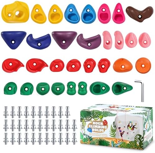 TOPNEW 32 Sujetadores de Escalada Multi Tamaño para Niños, Sujetadores de Pared de Roca para Adultos, Asas de Escalada para Pared de Roca para Juegos de Patio de Recreo Interior y Exterior - Incluye Herramientas de Montaje de 2 Pulgadas
