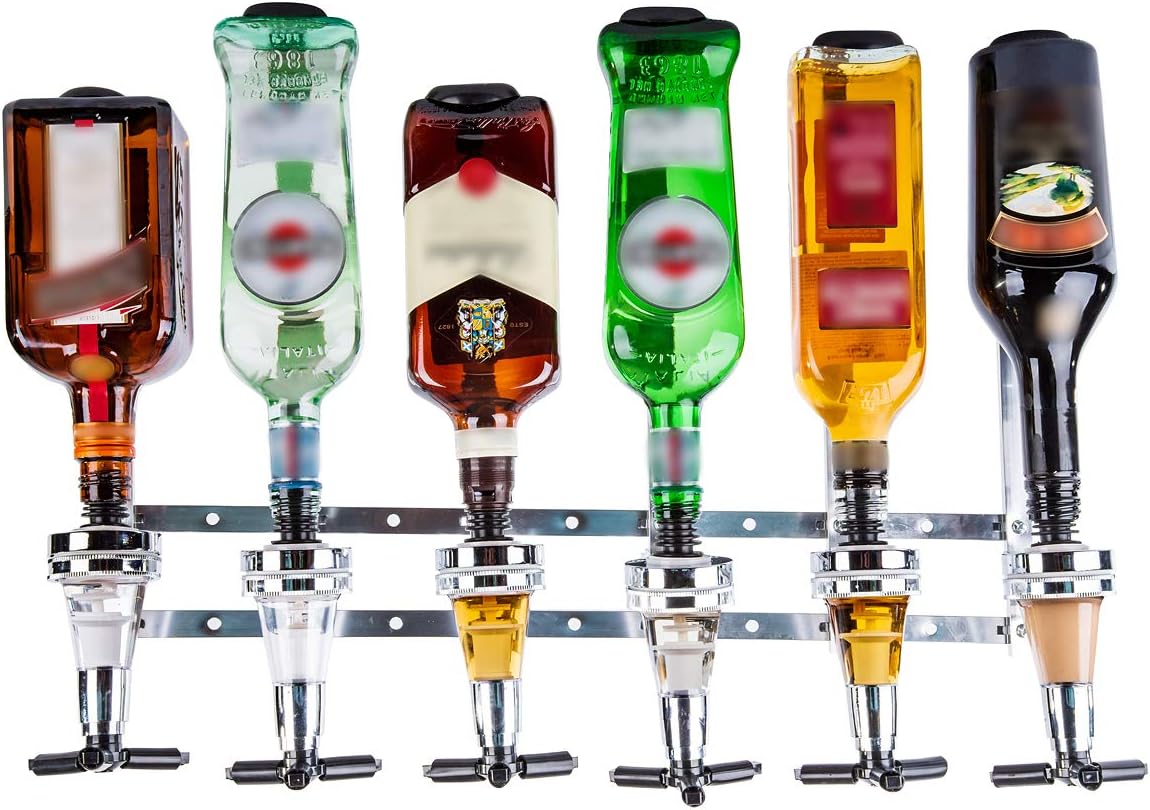 Dispensador de Licores de 6 Botellas Montado en la Pared: Añade este dispensador de licor a la pared para mejorar tu bar en casa, uso en fiestas, estación de servicio o tu cuarto de hombre. El diseño especial de nuestro dispensador de botellas de licor puede prevenir derrames.