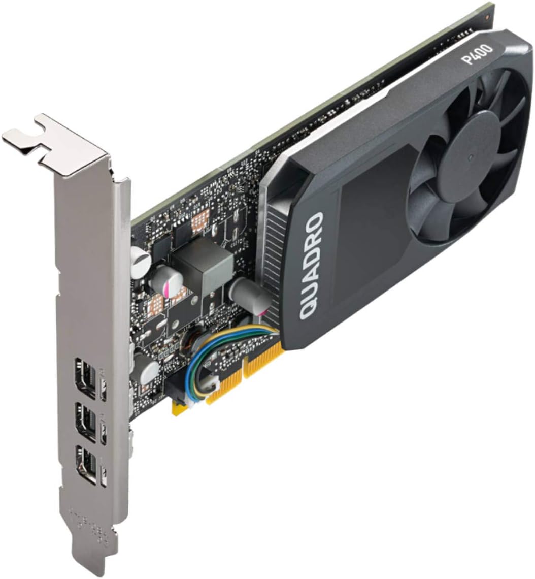 La nueva NVIDIA Quadro P400 combina la última arquitectura GPU Pascal con 2GB de memoria a bordo ultra rápida para ofrecer un gran rendimiento para una variedad de aplicaciones profesionales. Su factor de forma de perfil bajo de un solo ranura lo hace compatible con incluso los chasis más limitados en espacio y potencia. Admite tres pantallas 4K (4096 x 2160 a 60Hz) con color HDR, lo que le proporciona un amplio espacio visual de trabajo para ver su trabajo en una resolución extremadamente alta. Los profesionales buscan cada vez más reducir el costo total de sus soluciones informáticas. Los flujos de trabajo modernos de múltiples aplicaciones requieren que los usuarios evalúen el impacto de la funcionalidad y el rendimiento de la estación de trabajo frente al costo para asegurarse de que cualquier ahorro logrado por soluciones informáticas de menor costo no resulte en impactos en el cronograma y pérdidas comerciales. Con soporte para DisplayPort 1.4, la P400 puede manejar resoluciones de hasta 5K (5120 x 2880) a 60 Hz desde un solo cable. Puede combinar hasta cuatro GPUs Quadro en un sistema para simplificar la implementación de paredes de pantalla u otros entornos de visualización inmersivos. DisplayPort 1.4 ofrece soporte para color HDR, permitiendo pantallas más brillantes, colores más saturados y una relación de contraste mayor a 10,000:1.