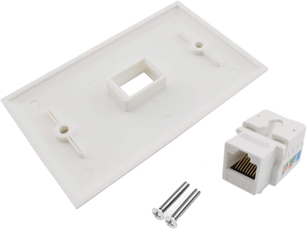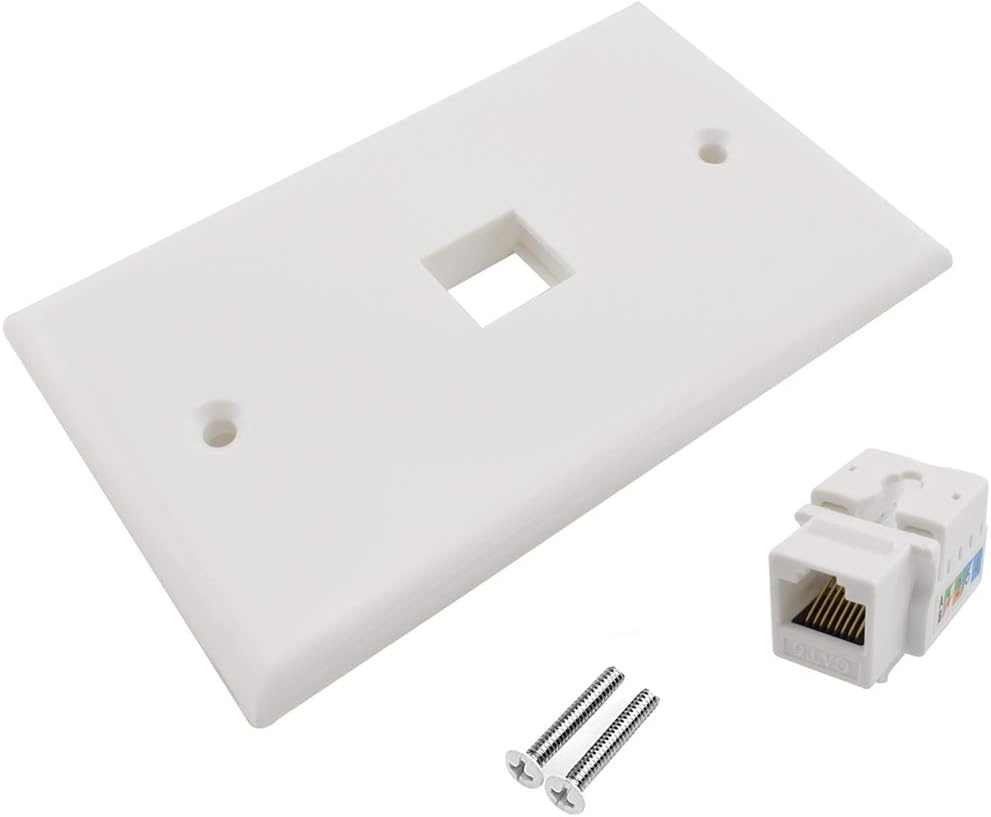 TAMANIO: L 2.75" x W 4.5" (70 mm * 114 mm) Placa de Parete Ethernet de Salida Única Gang con tornillos de montaje a juego, y se ajusta a una rejilla de tamaño estándar.