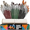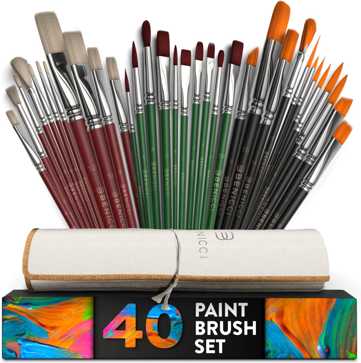 40 Piezas Profesional Pincel de Pintura Artista con Estuche de Almacenamiento - Incluye Pinceles de Arte Redondos y Planos con Cerdas de Jabali, Caballo y Nylon - Perfecto para Acrílicos, Acuarela, Guache, Óleo y Tela