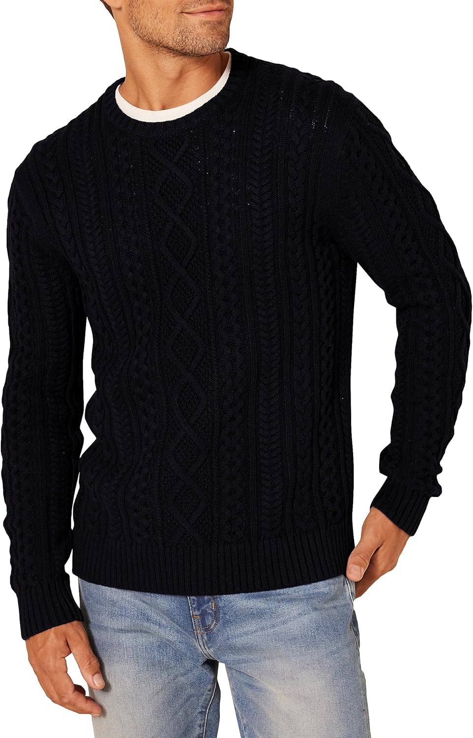 Amazon Essentials Jersey de Manga Larga para Hombre 100% Algodón con Cable y Cuello Redondo