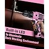 WORKPRO Conjunto de taladro inalámbrico rosa, kit de herramientas de taladro eléctrico de 12V, husillo sin llave de 3/8", cargador y bolsa de almacenamiento incluida - Cinta rosa