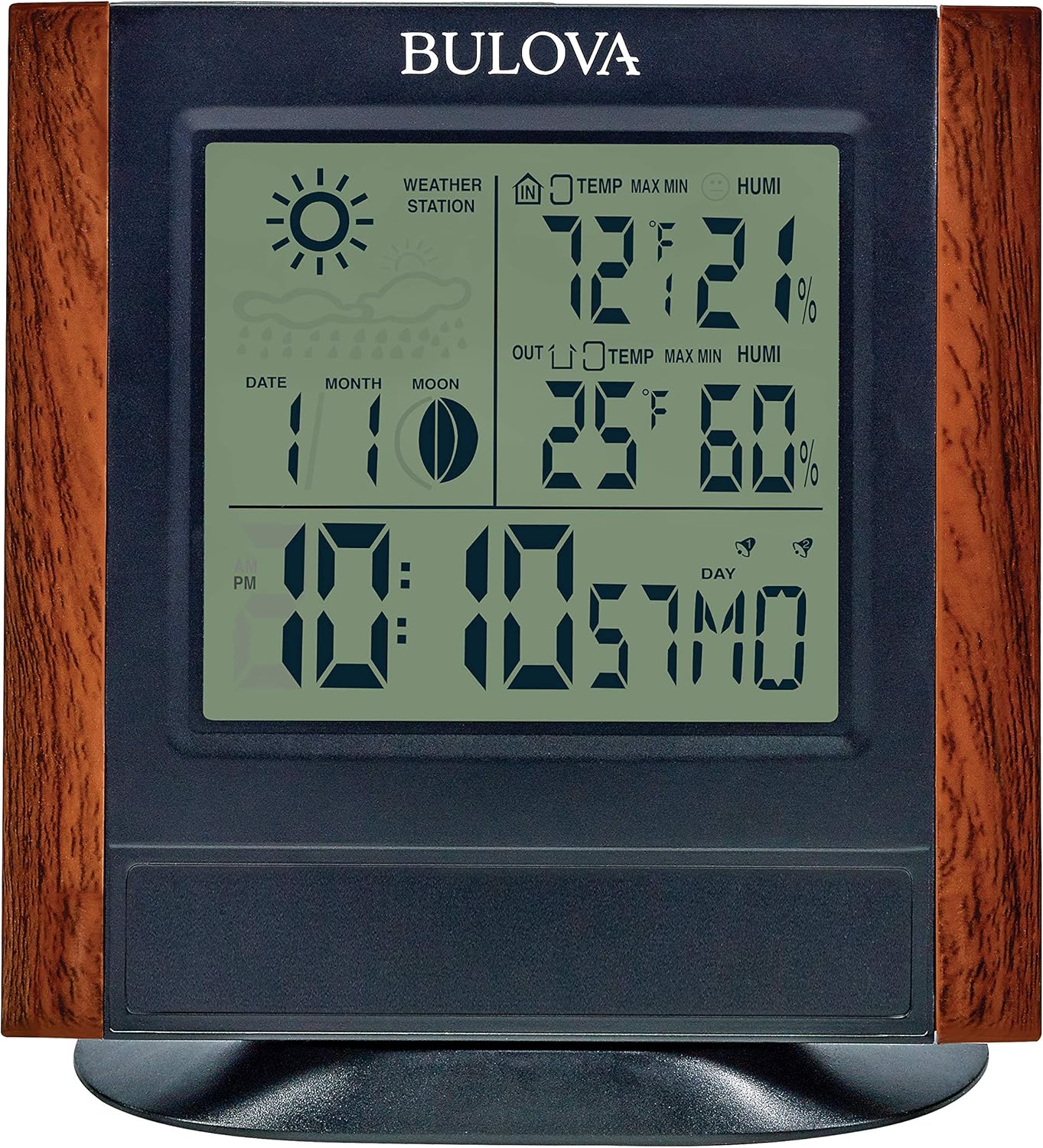 Reloj de mesa versátil Bulova Forecaster, marrón y negro, B1708