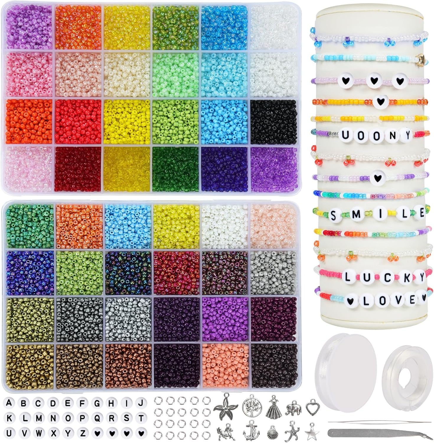 UOONY 35000+pcs 48 Color Glass Seed Beads Kit, 2mm Pequeñas Cuentas para Hacer Joyas, Regalos de Arte y Manualidades DIY
