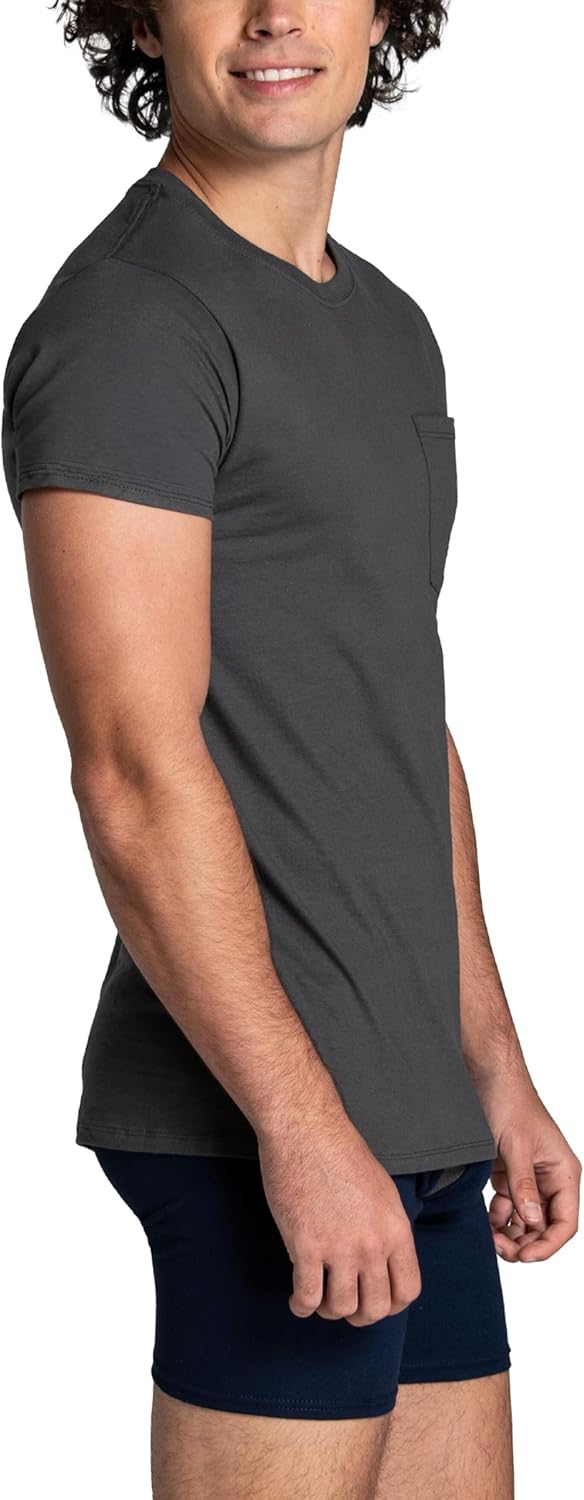 Nuestras camisetas de bolsillo para hombres son un elemento básico de vestuario casual que te encantará usar. Con cuello, algodón súper suave y bolsillo reforzado, las camisetas de bolsillo para hombres Fruit of the Loom® están diseñadas para la comodidad y hechas para durar. Cada camisa tiene una construcción duradera y de calidad que puedes esperar de Fruit of the Loom®. Vive tu vida más cómodamente con la camiseta de bolsillo para hombres Fruit of the Loom®. Estas están diseñadas para absorber la humedad, para que puedas mantenerte fresco y seco.