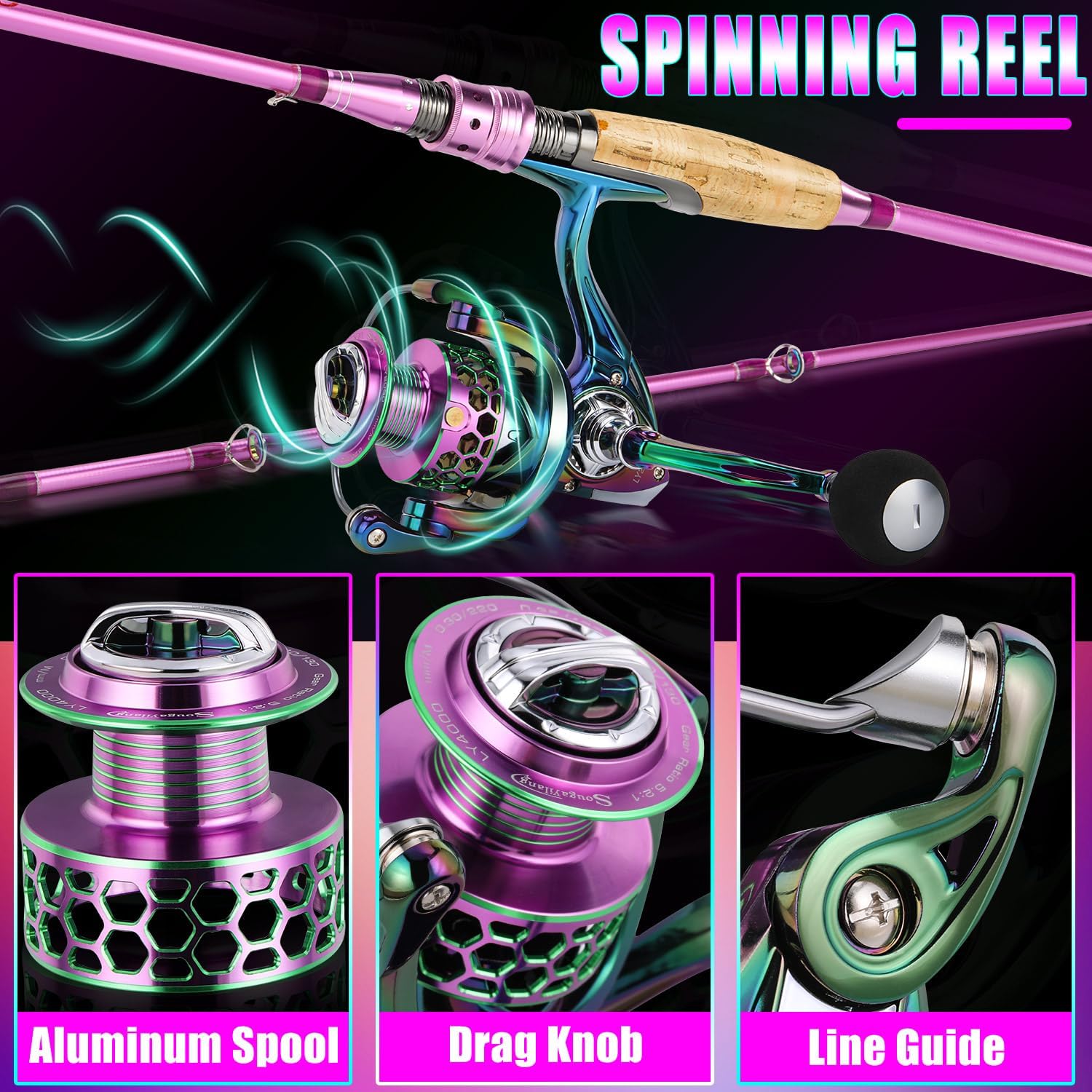 Combos de Caña y Carrete Sougayilang, Coloridas Cañas de Pescado de Dos Piezas con Carrete Suave y Fuerte Disponible para Agua Dulce y Salada