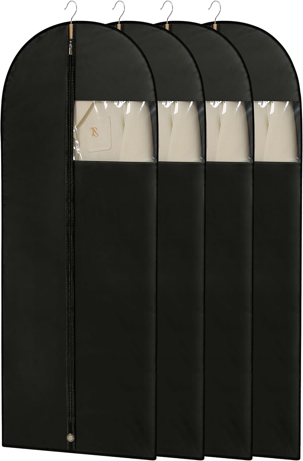 🌈【Tamaño de 65'' y Valor de Paquete de 4】 – Este set incluye cuatro cubiertas de guardarropa de 65 pulgadas de largo en un clásico color negro, ideal para togas y abrigos largos. Estas bolsas de guardarropa para vestidos son perfectas para guardar vestidos de graduación, vestidos de novia, trenchs o ropa de temporada mientras los mantienen libres de arrugas y protegidos.