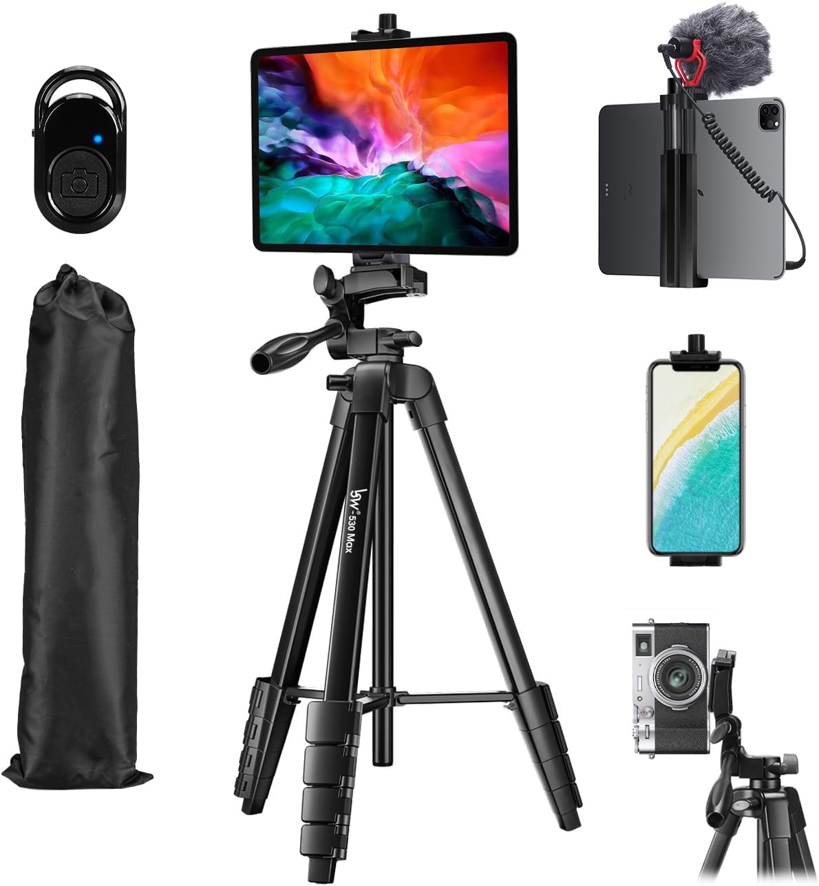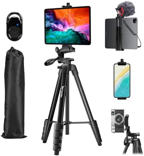 Trípode, Trípode de 73 Pulgadas para iPad Pro y iPhone Lusweimi Compatible con Tablet/iPad Pro de 12.9 Pulgadas, Soporte de Trípode para Cámara con Control Remoto Inalámbrico y Bolsa