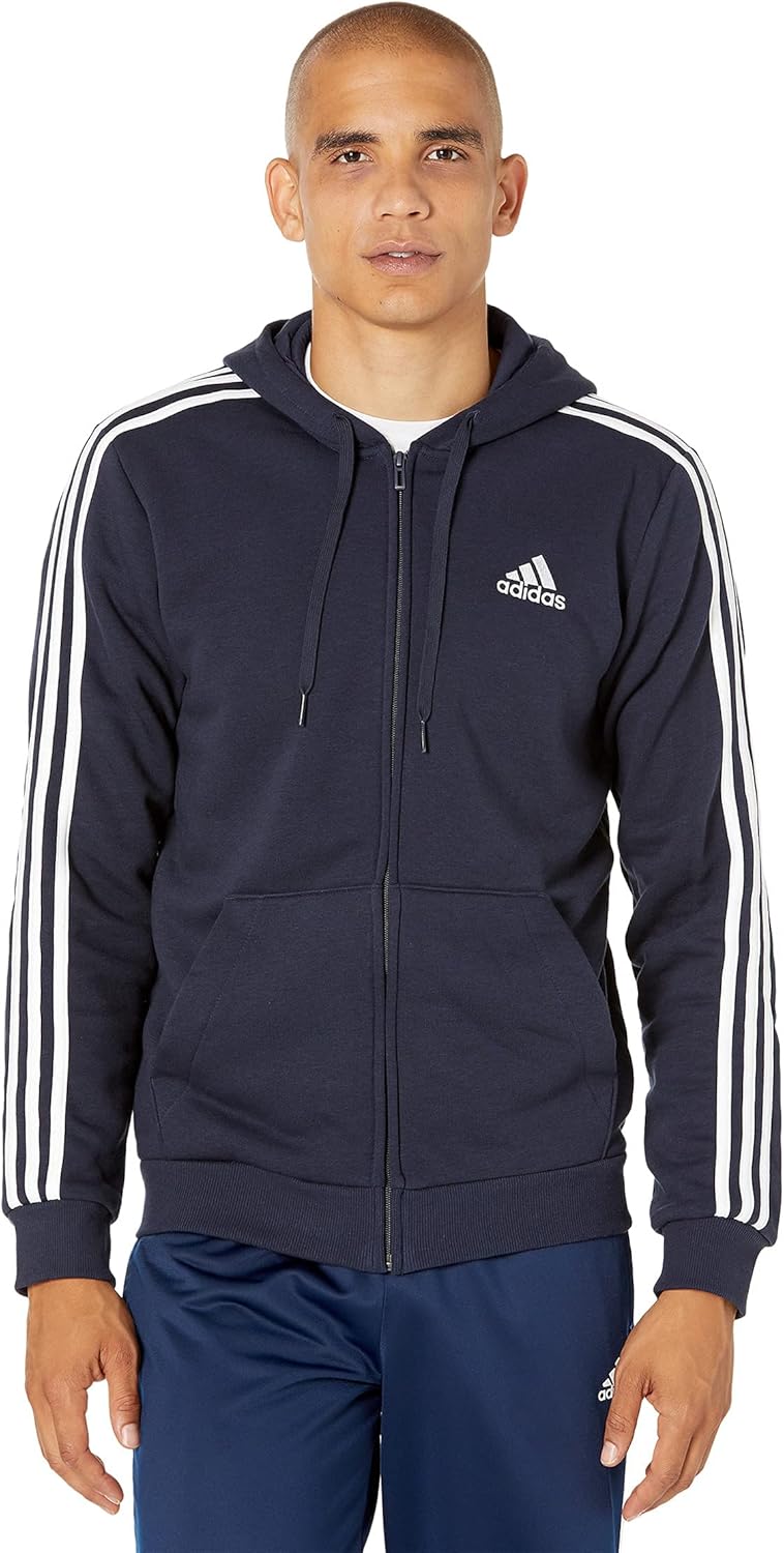 sudadera con capucha adidas Men's Essentials Fleece 3-rayas y cierre completo