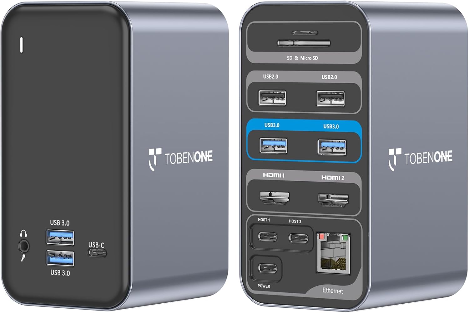 15-EN-2 Expansión y compatibilidad: Estación de acoplamiento TobenONE para MacBook Pro que se expande a 2x HDMI, 4x USB 3.0, 1x USB-C, USB C PD 3.0, 2x USB 2.0, audio/mic 3.5mm, SD/TF y Ethernet Gigabit. Conexión sencilla, NO se necesita controlador. Diseño exclusivo para MacBook Air 13" (2018-2020, chip Intel), MacBook Air 13"/15" (2025, chip M4); MacBook Pro 13"/15" (2016-2020, chip Intel), 14" (2021, 2023, 2024), 16" (2019, 2021, 2023, 2024), NOTA: los chips M1/M2/M3 solo pueden tener 1 monitor externo. No funciona con portátiles Windows