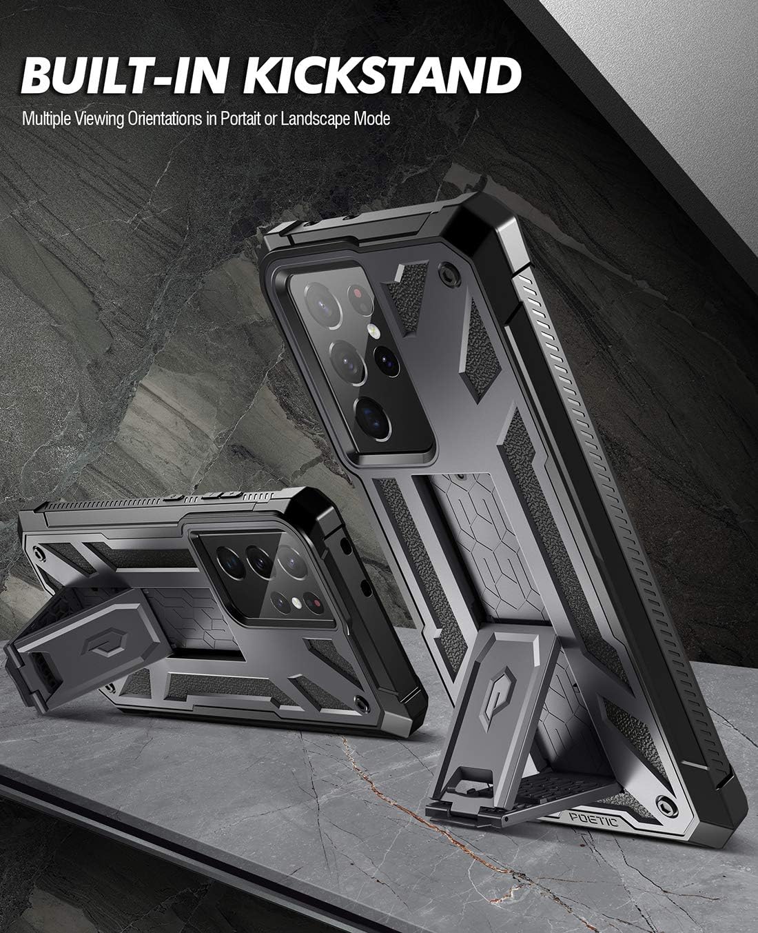 Funda Espartana Poética para Galaxy S21 Ultra 5G, Protector de Pantalla 6.8", Identificación por Huella Dactilar, Cubierta Resistente a Golpes, Soporte, Metálico Tono Metal