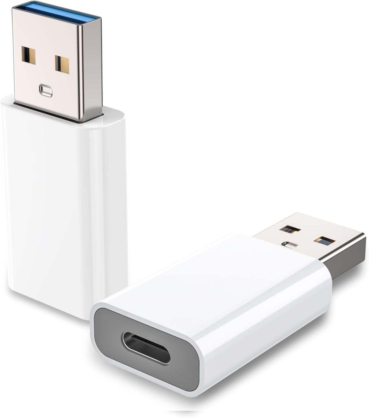 Adaptador MOSWAG USB a USB C 2 Unidades, Cargador USB C Hembra a USB A Macho para Coche para iPhone 16 15 14 Pro Max Plus, Apple Watch 10/9/8, iPad Air Mini 6 7, CarPlay
