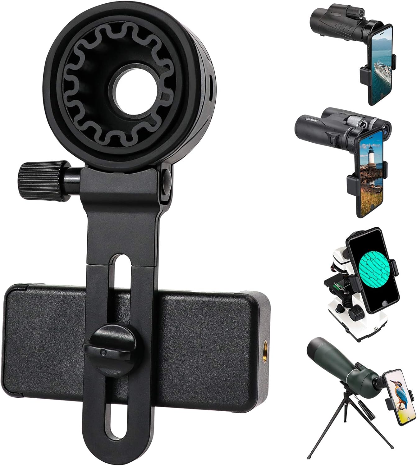Adaptador de Teléfono para Telescopio LAKWAR, Soporte Universal para Montar Celular Compatible con Binoculares, Monóculos, Microscopios, Periscopio, Telescopio, Soporte de Clip para Smartphone Compatible con Casi Todos los Teléfonos Móviles
