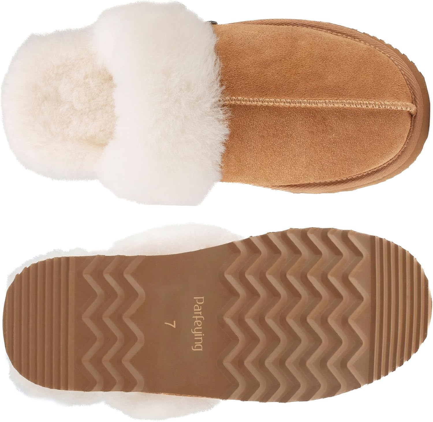 Zapatillas de Piel de Oveja para Mujeres Parfeying, Zapatos de Piel de Oveja para Interior y Exterior