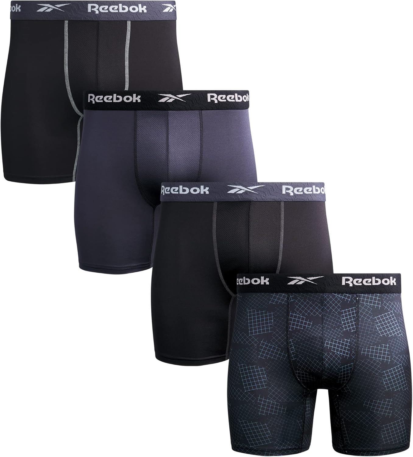 Ropa Interior Activa para Hombre Reebok - Calzoncillos Boxer de Rendimiento (Paquete de 4), Talla Grande, Tinta Negro Azul