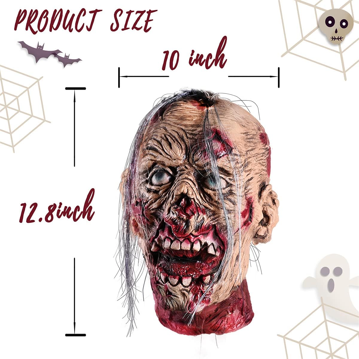 Cabeza de Zombie Ultra Realista: Hecha a escala 1:1 de tamaño real, esta cabeza severada presenta heridas detalladas, manchas de sangre y un cuello espeluznante para un aspecto terroríficamente realista.