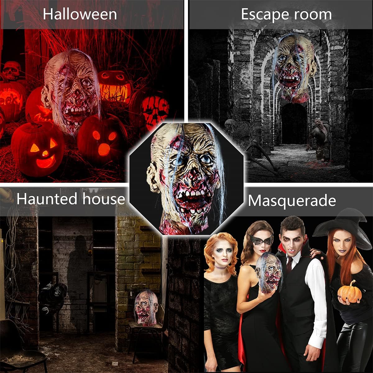 KHC-KHF Halloween-Props Cabeza de Zombie Cortada y Severada de Tamaño Real Decoración de Halloween Espeluznante para Exteriores e Interiores