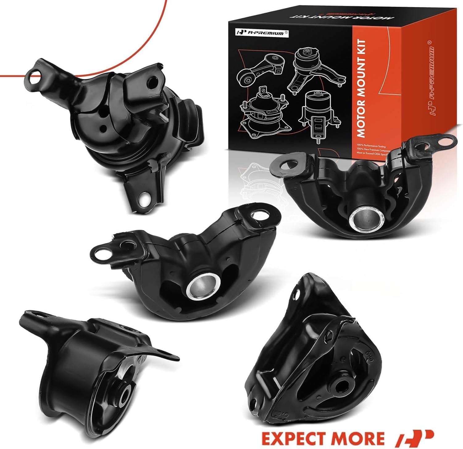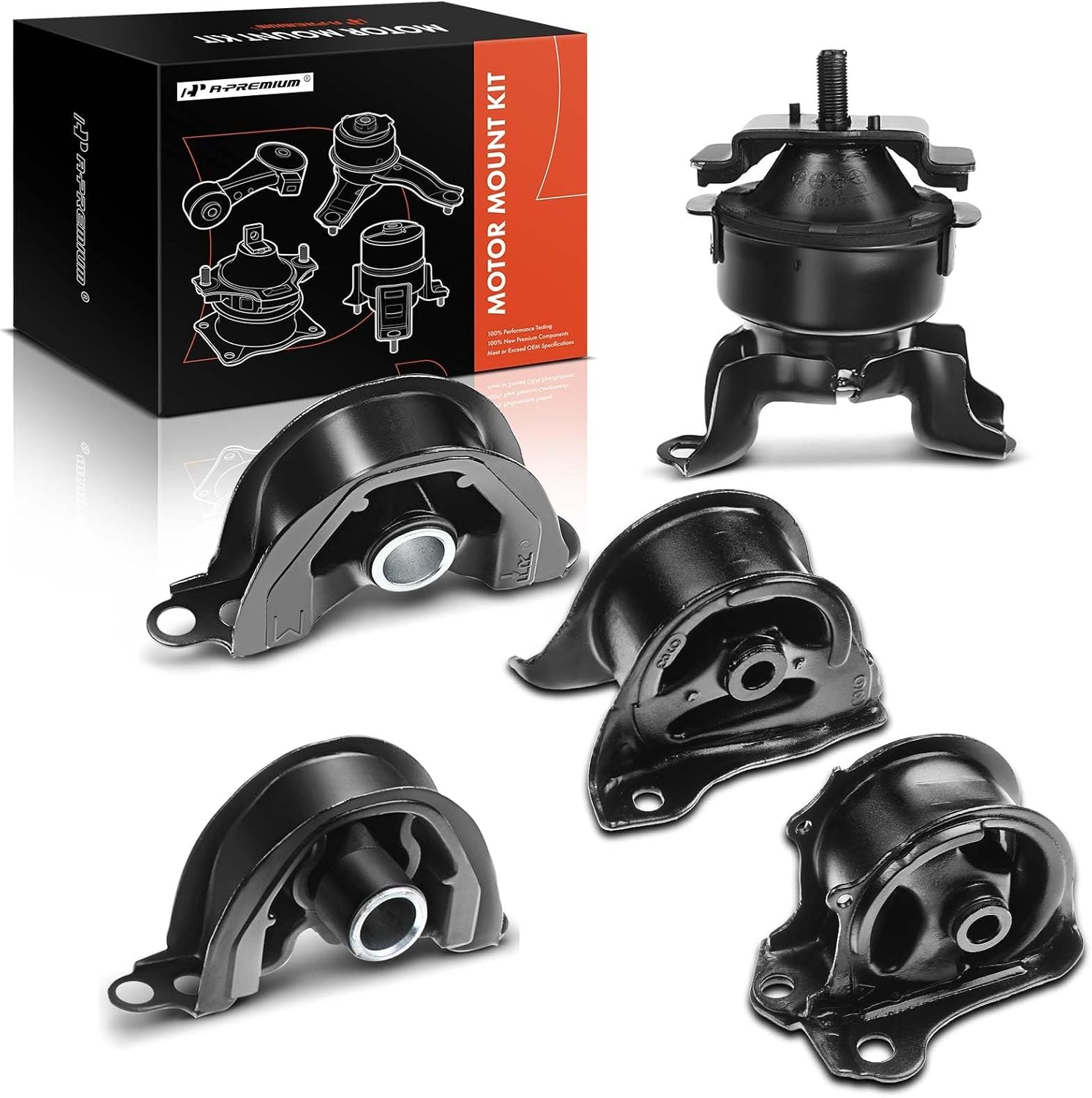 [Contenido del paquete]: 1 x Soporte de motor derecho delantero (A6520), 1 x Soporte superior de motor izquierdo delantero (A6556), 1 x Soporte inferior de motor izquierdo delantero (A6502), 1 x Soporte de motor trasero (A6506), 1 x Soporte de motor de transmisión (A6526)