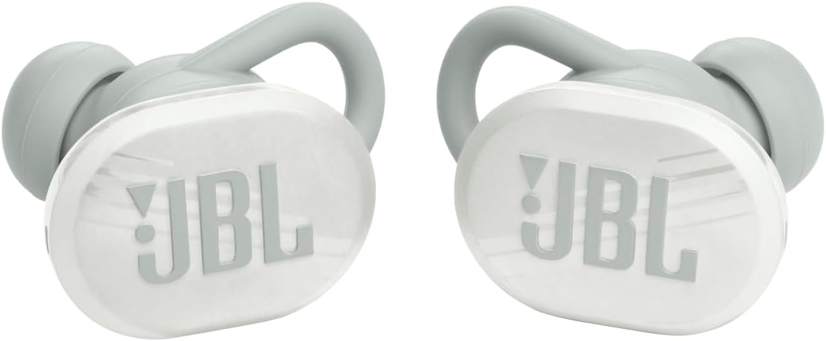 JBL Endurance Race TWS - Auriculares deportivos inalámbricos resistentes al agua, JBL Pure Bass Sound, Hasta 30 horas de duración de la batería, IP67 a prueba de agua y polvo, Ambient Aware & TalkThru (Blanco)