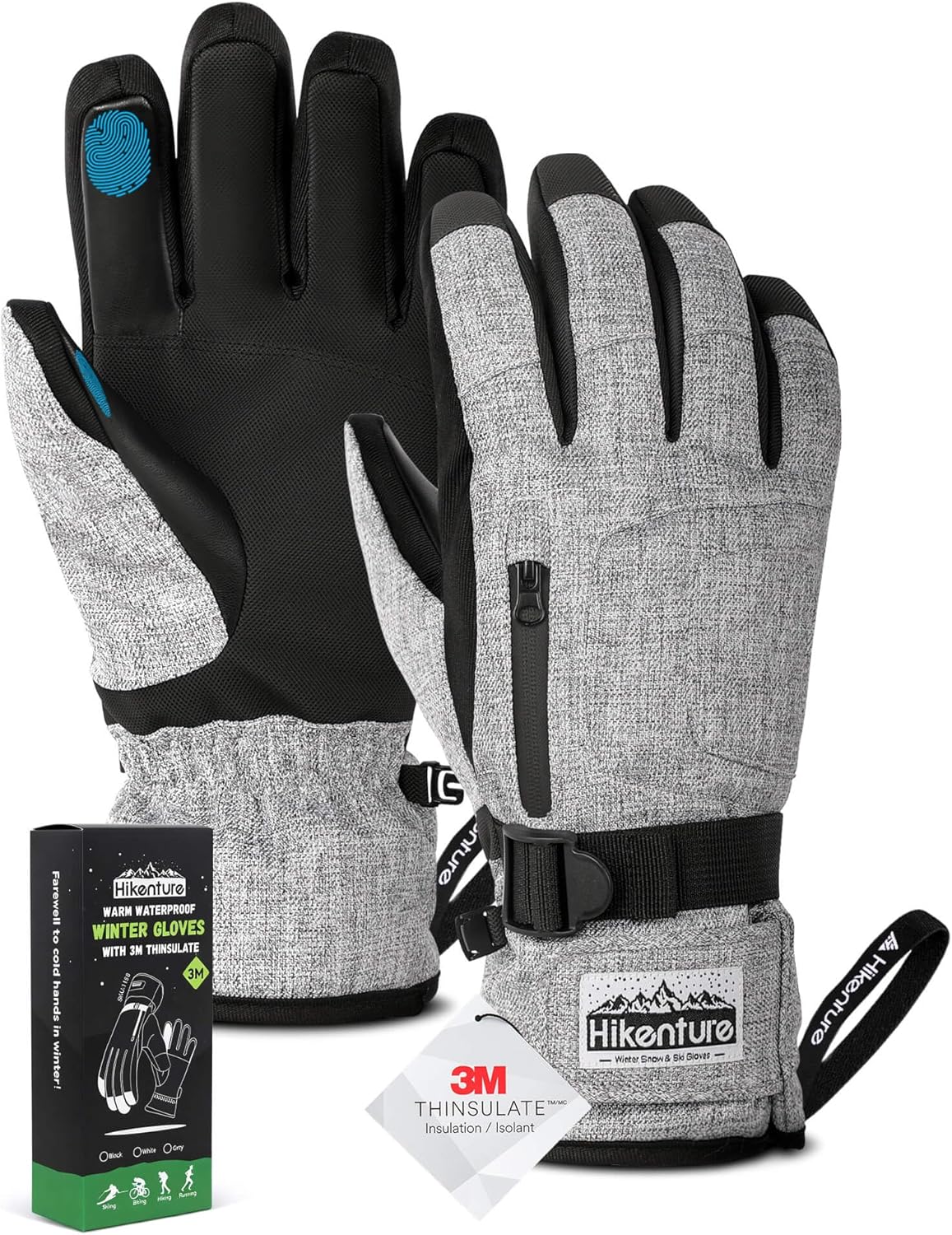 Guantes de Nieve Hikenture para Hombre y Mujer, Guantes de Esquí Hidro repelentes con Bolsillo y Función Táctil, 3M Thinsulate