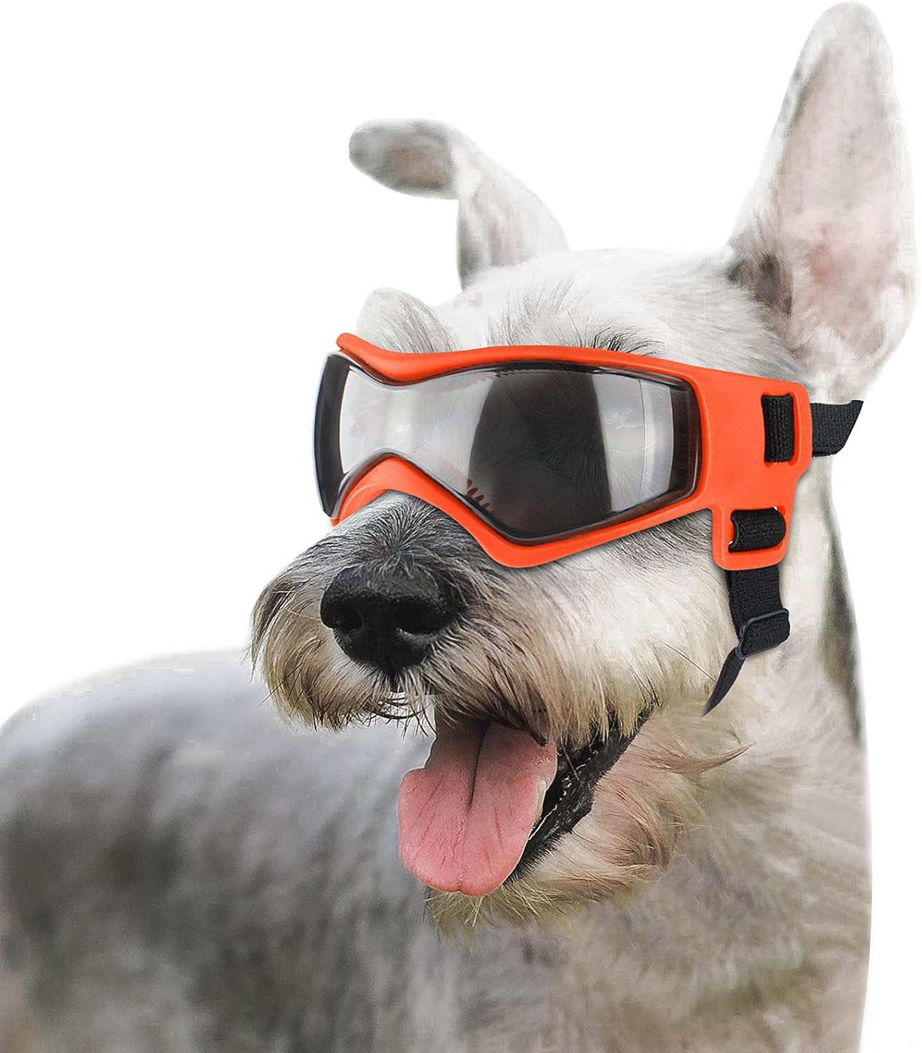 Gafas para Perros ENJOYING Anti-UV para Razas Pequenas, Gafas para Perros Pequeños y Medianos, Anti-Vapores, Anti-Viento, Protección para Ojos de Perros, Marco Suave, Naranja
