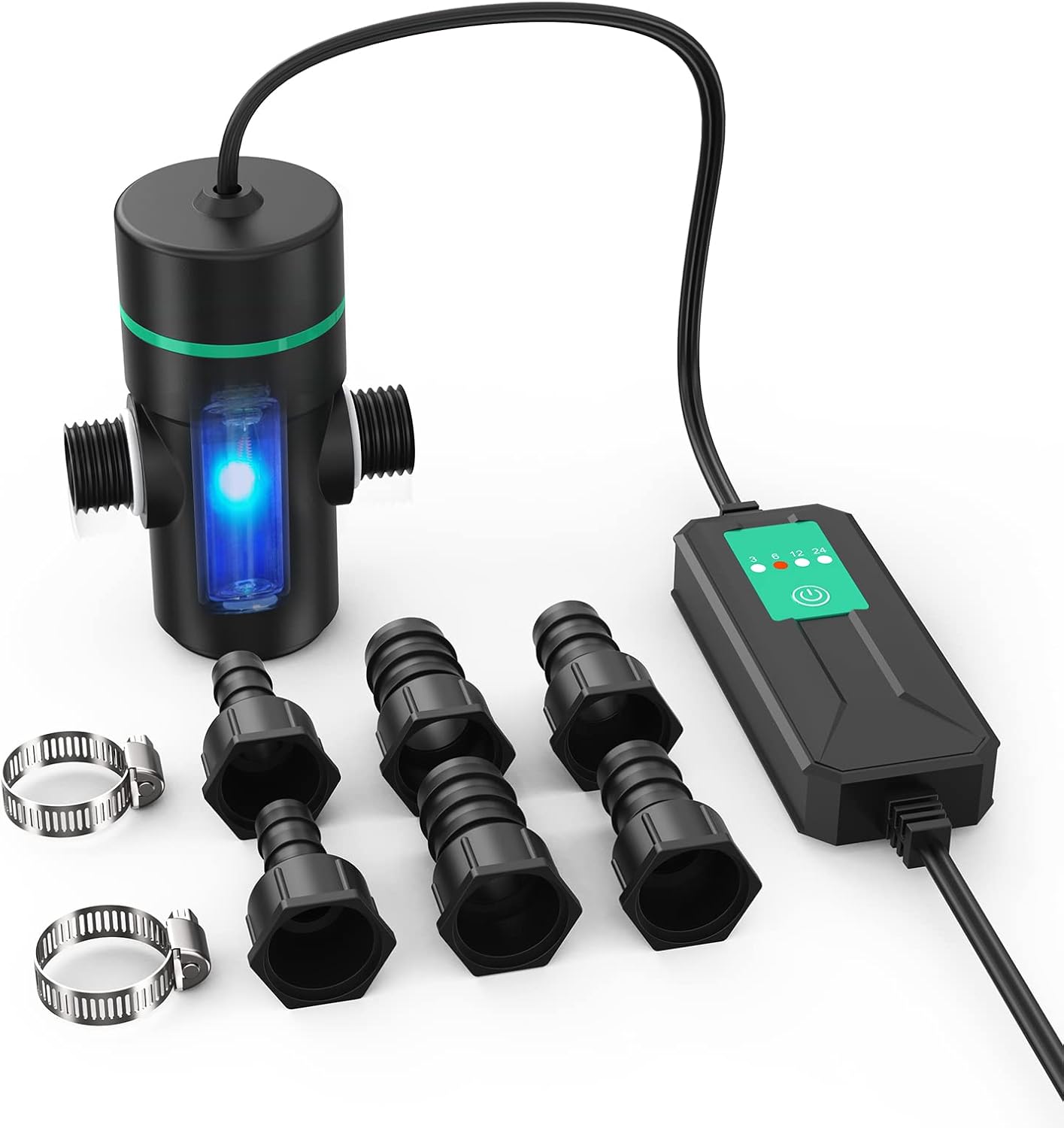 【Amplia aplicación】El clarificador de luz para acuarios se puede conectar a una variedad de filtros. En resumen, solo necesita conectarse entre las tuberías de agua. Para ser utilizado directamente en el agua, apto para agua salada y dulce.
