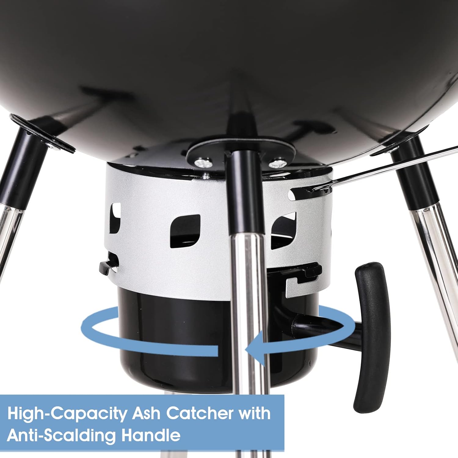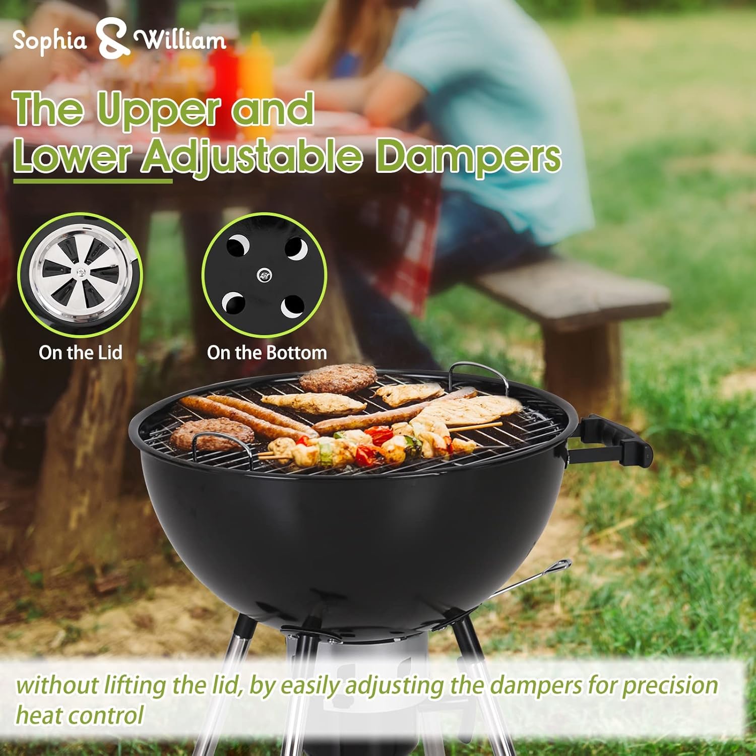Sophia & William 18-pulgada Parrilla de Carbón BBQ con Tapa y Cuenco de Esmalte de Porcelana, Rejilla Cromada, Colector de Cenizas para Picnic al Aire Libre, Camping, Patio, Negro