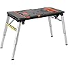 [Stable Load Bearing & Adjustable Height] This 7-in-1 versatile work table is supported by heavy duty aluminum legs and durable steel frames, offering large load bearing capacity and super stability with triangle design for any tools, wood, materials, and working people. Height of 20.5 inches for scaffold and platform mode, height of 31.5 inches for workbench and sawhorse mode.