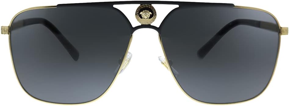 Versace VE 2238 143687 Gafas de Sol Rectángulo de Metal Dorado/Negro Mate con Lente Gris