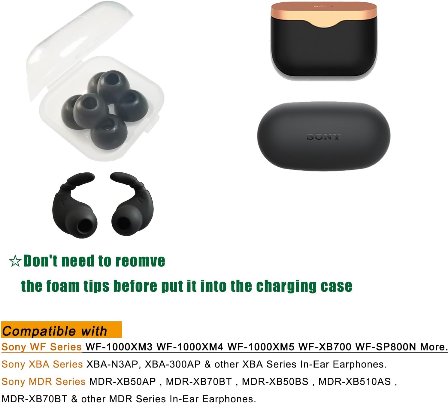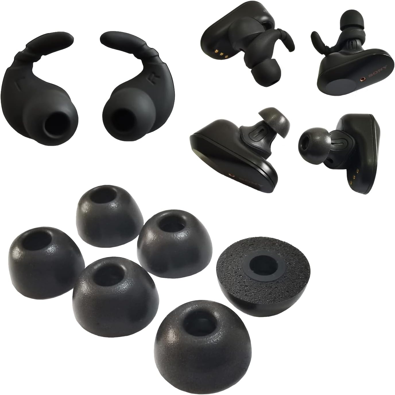 Puntas de memoria de espuma para repuestos de gancho de oreja Sony WF-1000XM4/WF-1000XM5, puntas de auriculares de espuma de memoria LMS para Sony WF-1000XM4 WF-1000XM3 WF-XB700 WF-SP800N WI XBA etc. Negro 3 pares