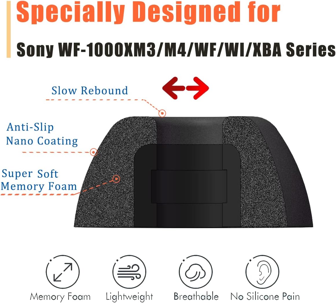 【Material más reciente】Este espuma de memoria con espuma de poliuretano más reciente, las puntas de oreja están especialmente diseñadas para auriculares Sony, más suaves y cómodas que otros materiales de espuma ordinarios. Especialmente en aislamiento de ruido y mejora de la calidad del sonido.