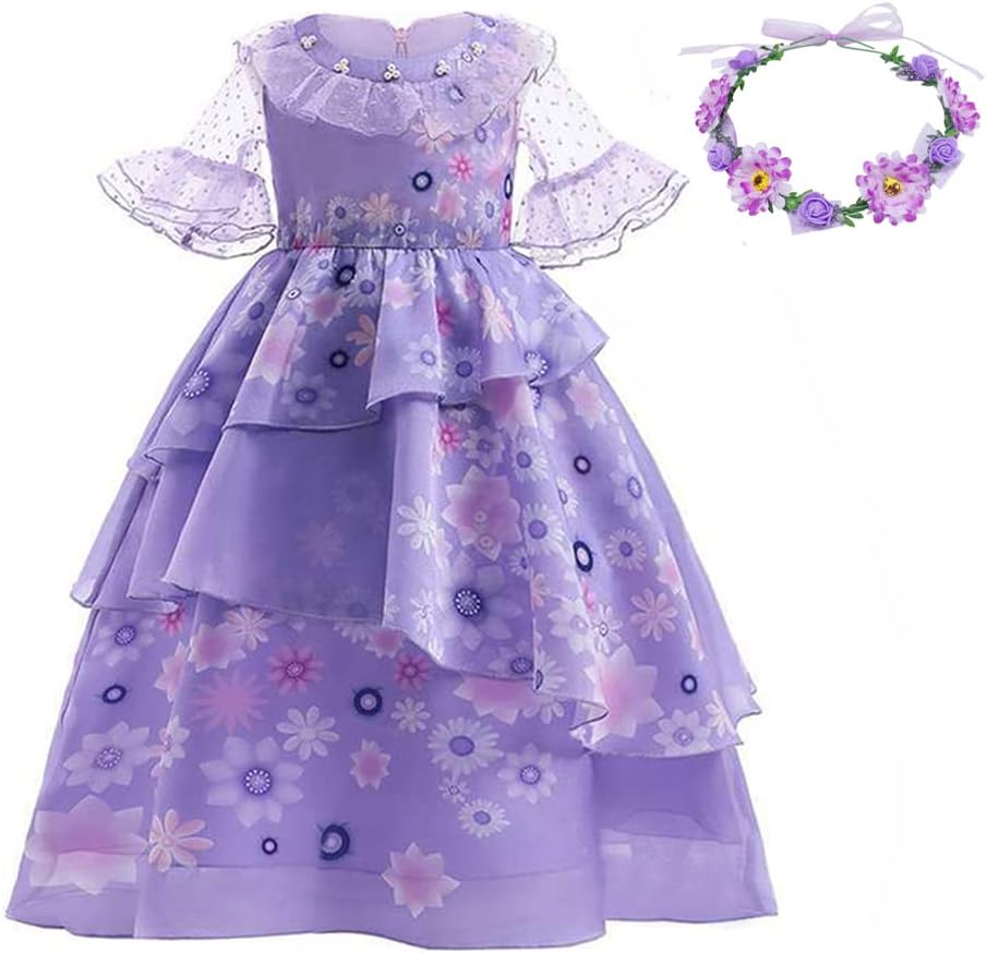 Vestido de disfraz de Encanto Mirabel para niñas Cosplay Isabela Madrigal Princesa Halloween con gafas y aretes