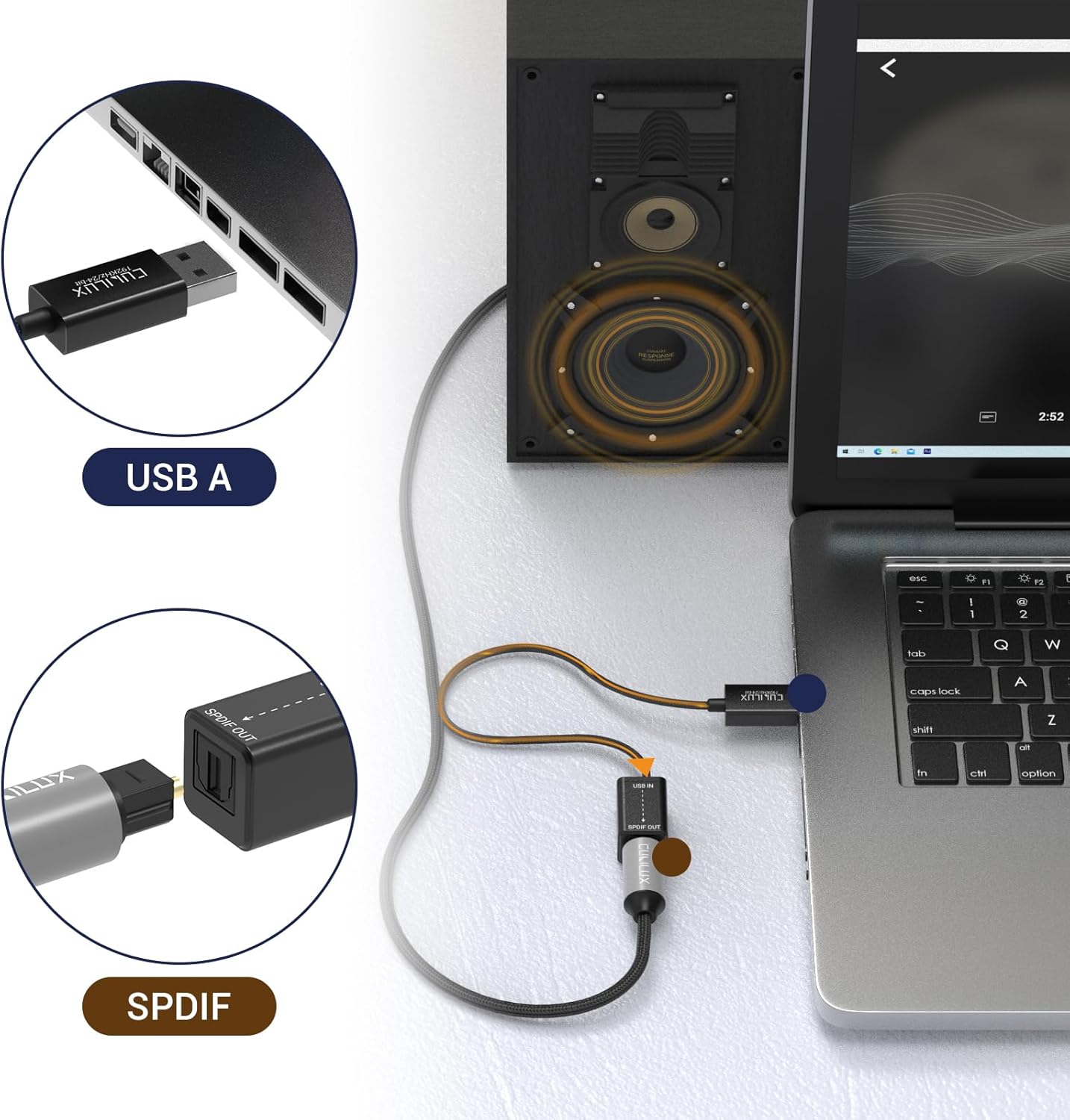 Adaptador de Audio Óptico USB A a TOSLINK de Cubilux, Convertidor Digital Unidireccional USB Tipo A a S/PDIF, Transmisor S/PDIF para PC y Laptop SOLO, NO para TV u otros dispositivos