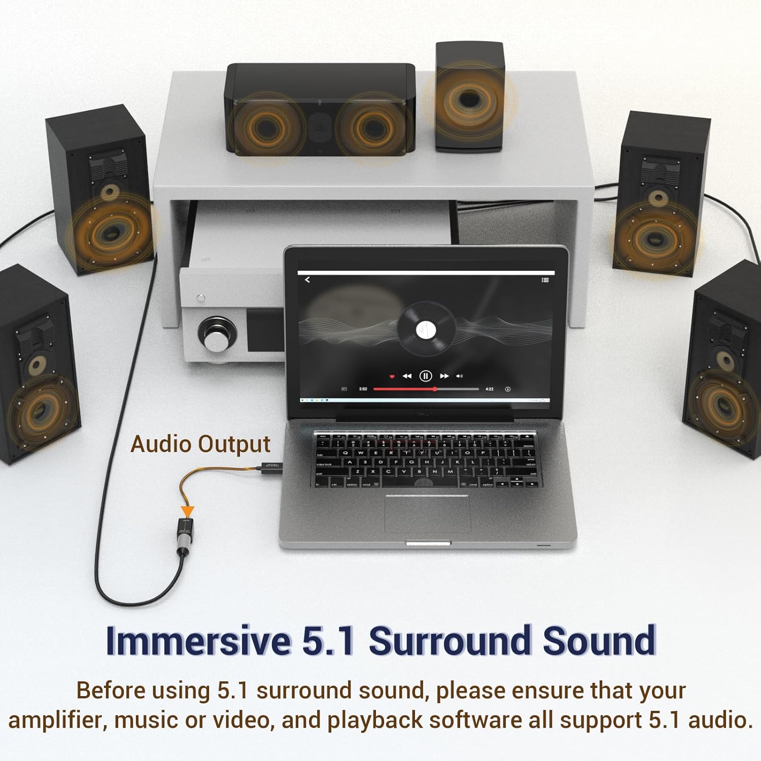 [Sonido Hi-Res Cristalino] – El Conector USB Tipo A a TOSLINK ofrece un sonido de alta resolución nítido y claro a 48KHz/24-bit, 96KHz/24-bit, 192KHz/24-bit con gran claridad y ricos detalles de audio.