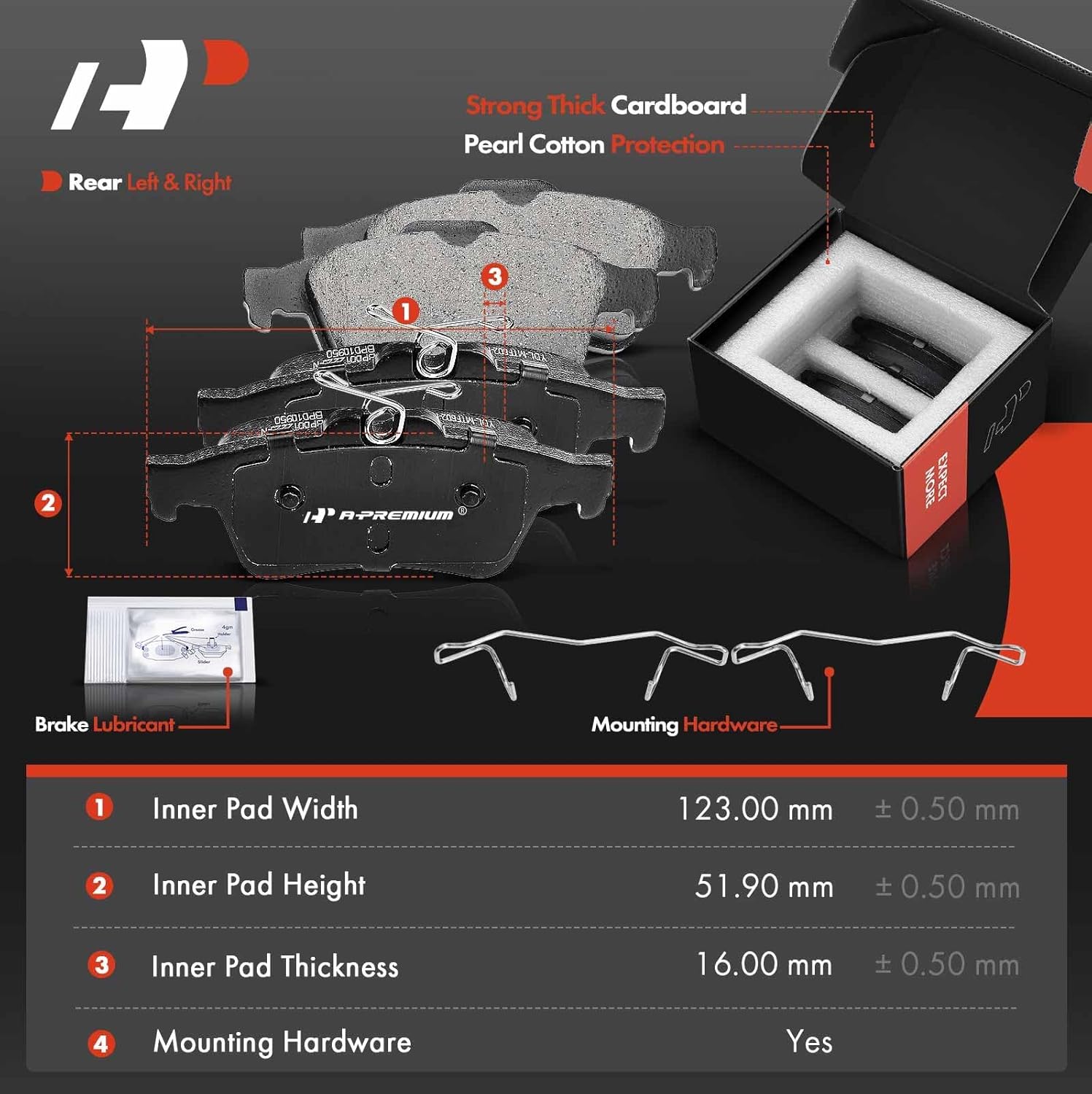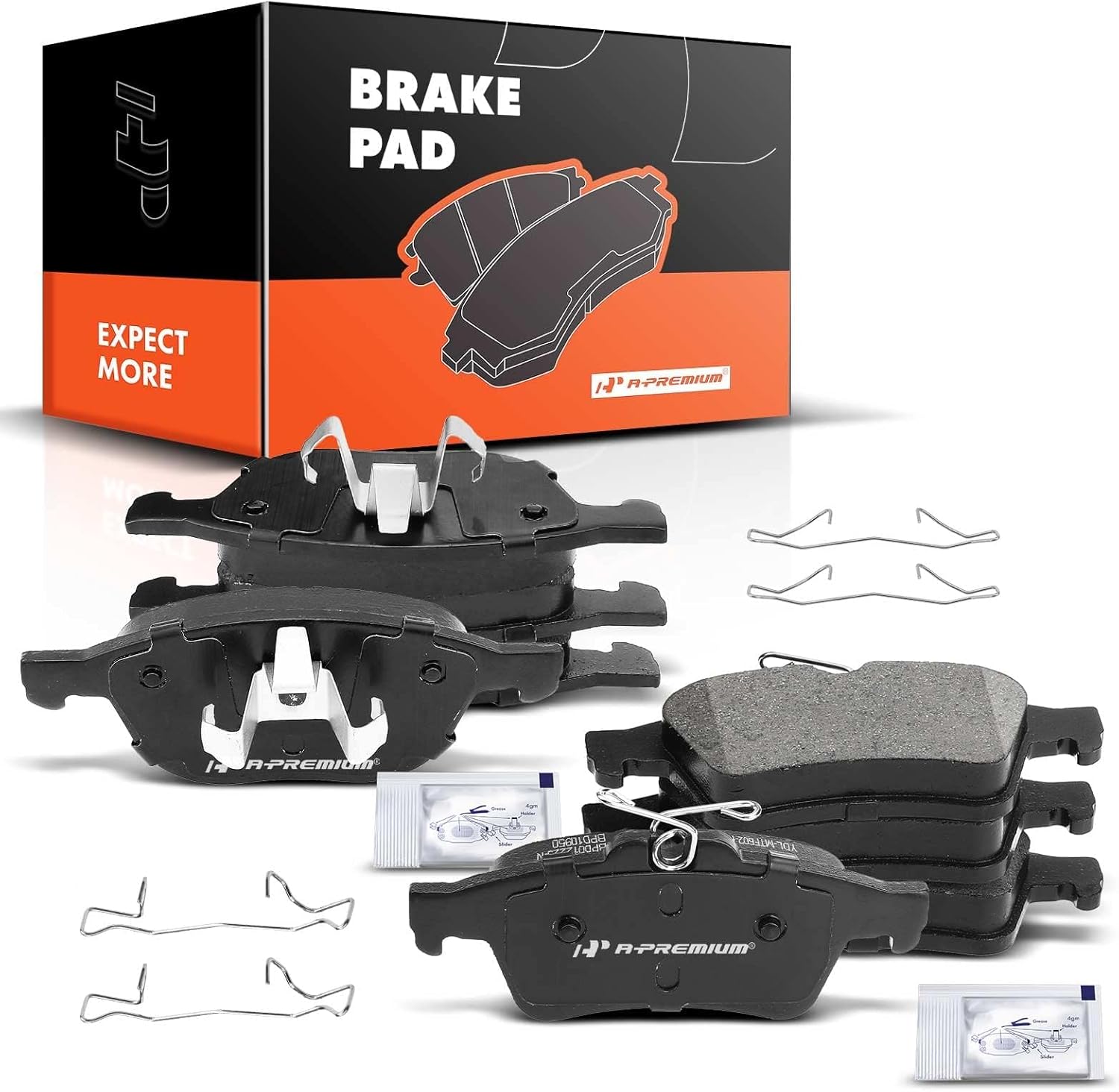 Juego de Pastillas de Freno de Disco Cerámica A-Premium Front & Rear Compatible con Modelos Selectos de Ford, Mazda y Volvo - Escape 2013-2016, Focus 2012-2018, 3 05-13, 3 Sport, 5, C30, C70, S40, V50, Transit Connect