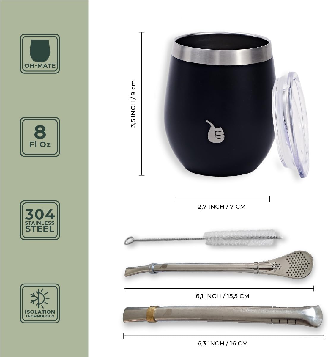 TAMANÑOS CONVENIENTES - Diseñada para un manejo y portabilidad fáciles, esta taza tiene un tamaño perfecto para su ritual diario de mate.