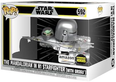 Celebra el fandom más estelar de todos con Pop! El Mandaloriano™ y su adorable huérfano, Pop! Grogu™! ¡Salga con ellos en su próxima aventura con este exclusivo Pop! Ride que presenta a Pop! El Mandaloriano™ en N1 Starfighter (con Grogu™)! Dale a este dúo un lugar seguro para aterrizar en tu colección de El Libro de Boba Fett™. La figura de vinilo coleccionable mide aproximadamente 4.55 pulgadas de alto. Encuentra más productos Funko en Amazon.