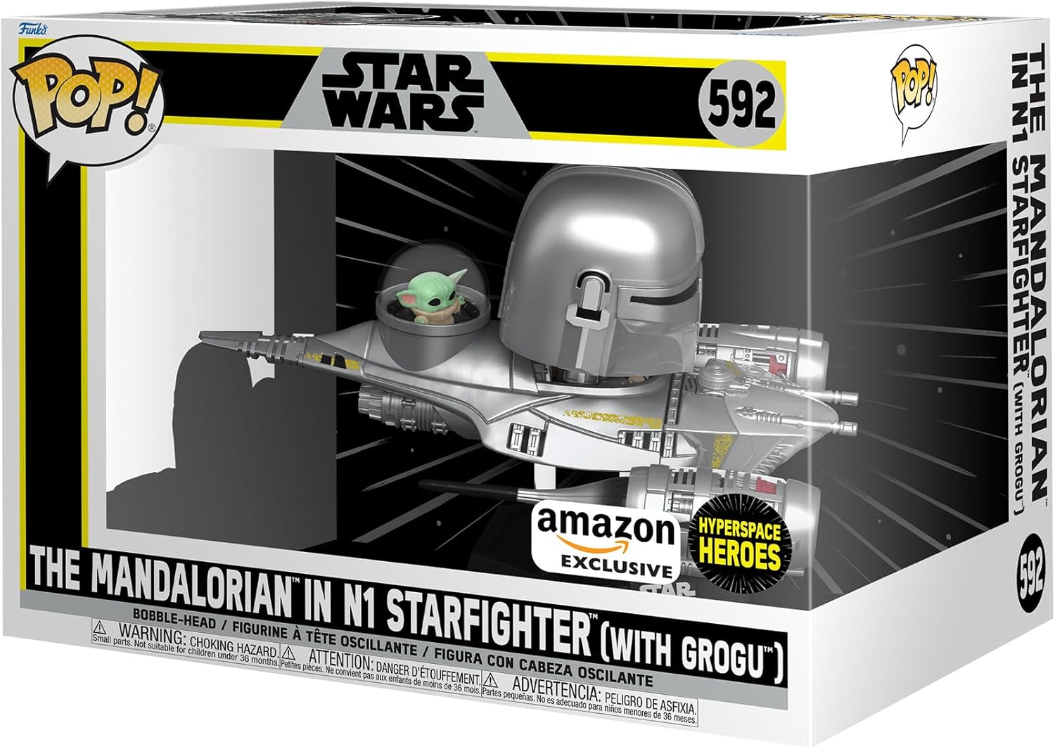 Funko POP! Ride Super Deluxe: Star Wars Hyperspace Heroes - El Mandaloriano en N1 Starfighter (con Grogu) - Figura de Vinilo Coleccionable