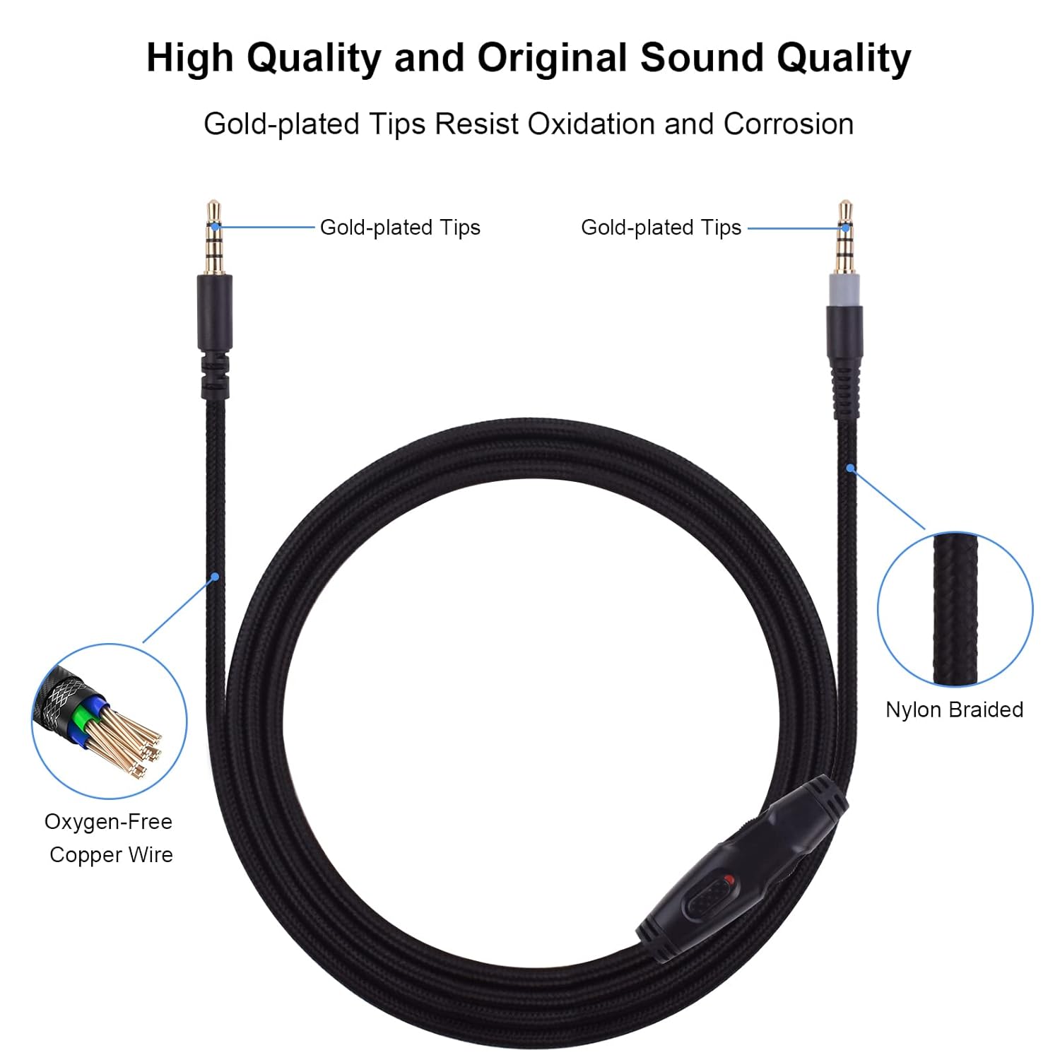 El cable desmontable tiene un interruptor de silencio en línea y control de volumen, fácilmente silencia o desactiva el micrófono del auricular, ajusta el volumen del juego