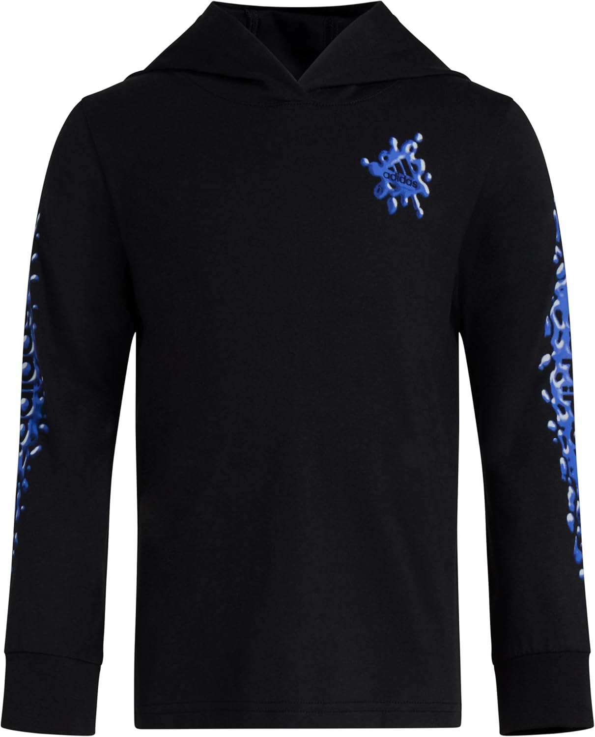 Esta sudadera con capucha para niños de manga larga lleva el texto "adidas" con gráficos en negrita a lo largo de las mangas y en el pecho. Está hecha de jersey de algodón que es suave y fácil de llevar. Esta sudadera con capucha se puede llevar sola o en capas debajo de un suéter.