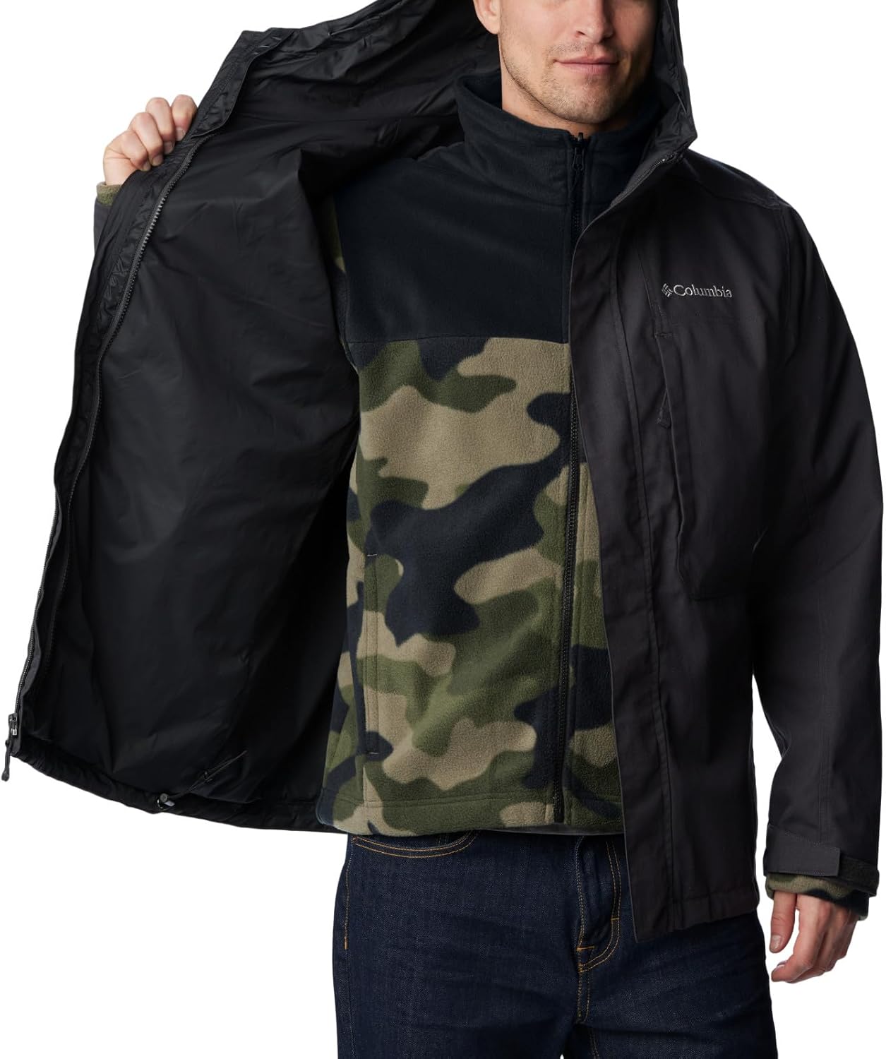 Una chaqueta casual que viene preparada, con una cubierta resistente al clima y una forro de polar cálido que se pueden usar juntos o por separado. Los detalles incluyen bolsillos multifuncionales con cremallera, y un dobladillo y puños ajustables. La cubierta de mezcla de algodón y lona tiene una capucha protectora con ajuste de cordón, mientras que el forro está hecho de un polar súper suave de 250g MTR. Cójalas juntas para una doble capa de estilo, cobertura y calidez. Columbia ofrece esta chaqueta en múltiples colores y tallas. Corte Regular. Tallas extendidas disponibles. Para asegurarte de que la talla que elijas es la correcta, utiliza nuestra tabla de tallas y las siguientes instrucciones de medición: Para las mangas, comienza en el centro de la nuca y mide a través del hombro y hacia abajo hasta la manga. Si obtienes un número parcial, redondea al siguiente número par. Para el pecho, mide en la parte más amplia del pecho, debajo de las axilas y sobre los hombros, manteniendo la cinta métrica firme y nivelada.