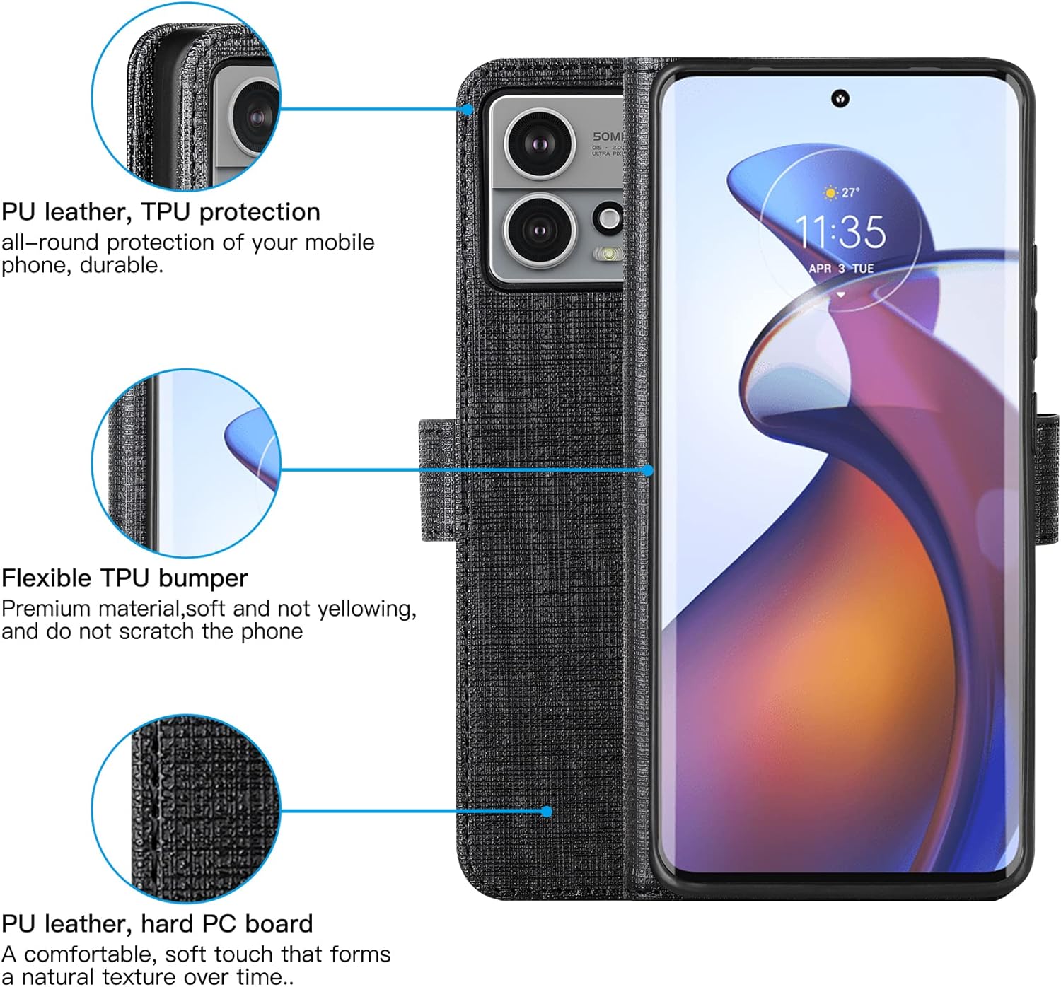 PROTECCIÓN DURADERA: La funda cartera Foluu para Motorola Edge 30 Fusion está hecha de lona sintética premium. El material interior flexible de TPU proporciona una buena protección para su dispositivo para proteger su teléfono contra arañazos, golpes, suciedad, desgaste diario y más.