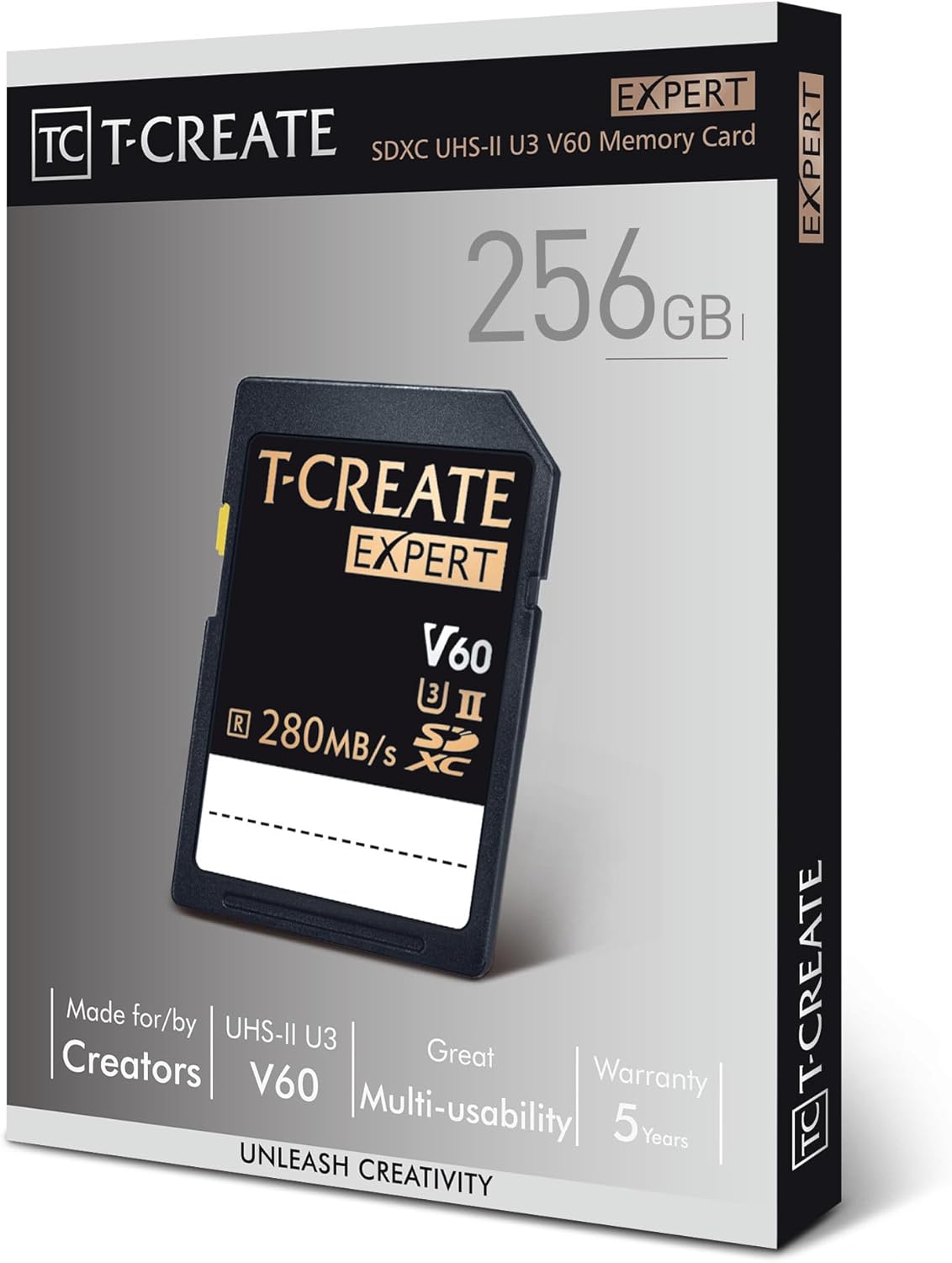 Tarjeta SD TEAMGROUP T-Create Expert 256GB UHS-II SDXC U3 V60 Velocidad de lectura de hasta 280MB/s, compatible con grabación 8K y 4K para cámaras digitales Canon Sony Nikon Panasonic Olympus TTCSDY256GIIV6001